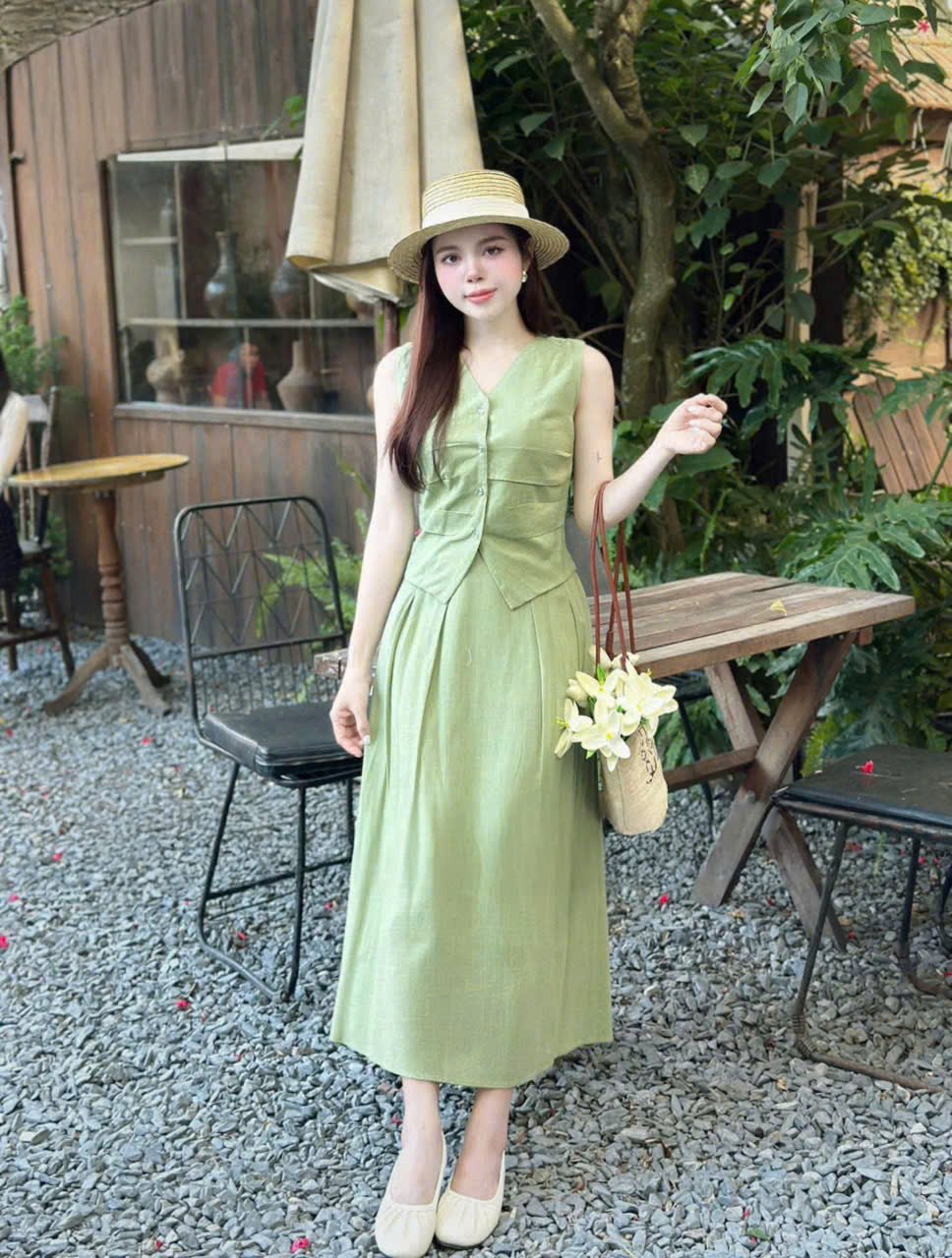 Size L : eo 76 ; dài váy 88 ; ngực 94 ; dài áo 54