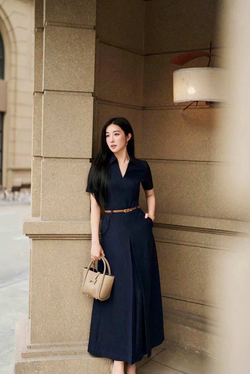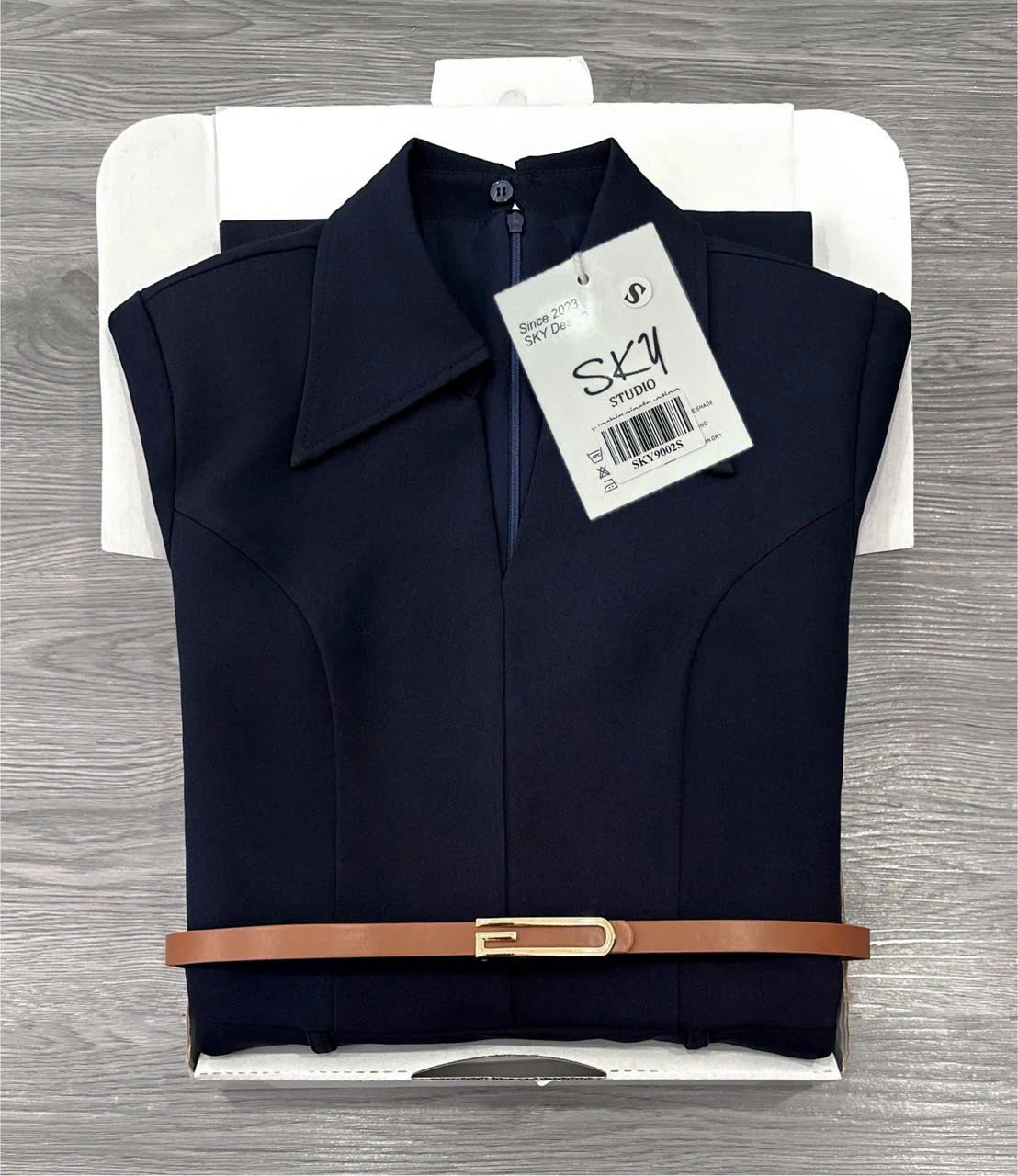 SKY9002 ĐẦM SƠ MI CỔ SẺ V KÈM NỊT (XANH ĐEN )