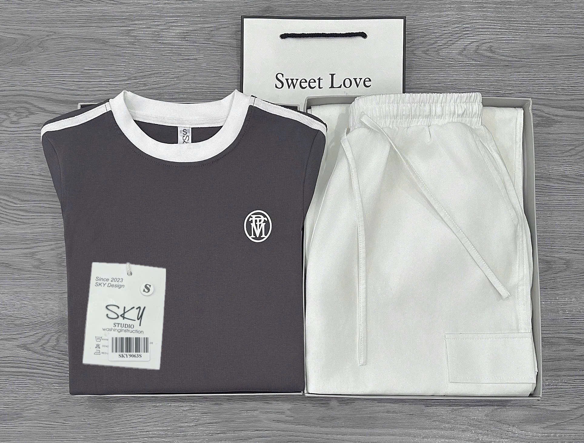 SKY9063 - SET ÁO THUN PHỐI SỌC + QUẦN DÀI TRẮNG