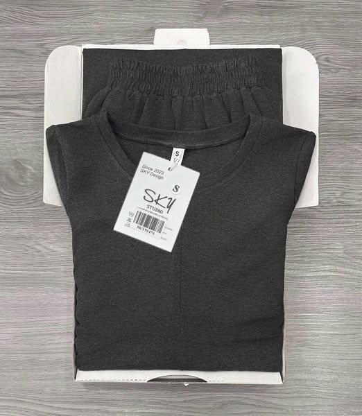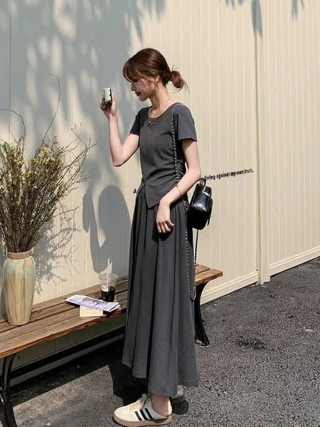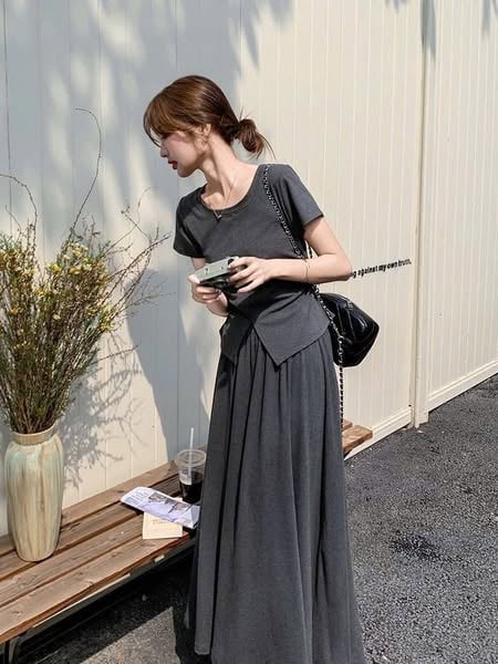 SKY9147 - SET ÁO THUN XẺ VẠT + CHÂN VÁY DÀI (XÁM)