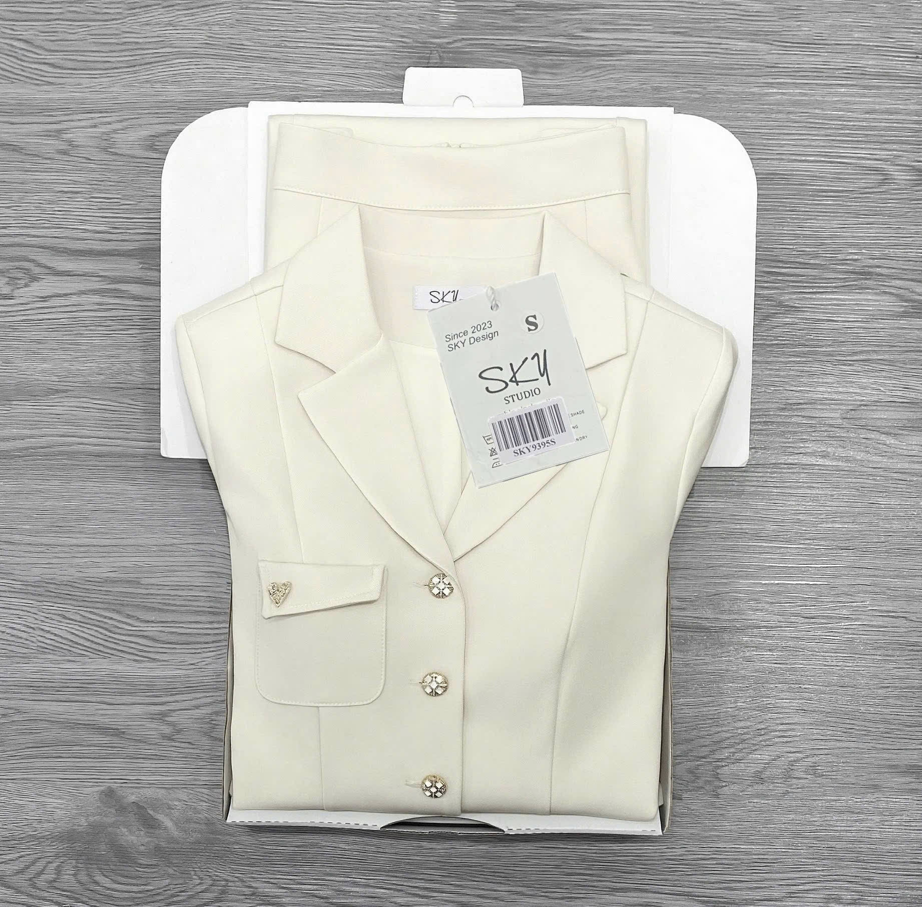 SKY9395 SET VEST TAY NGẮN TAG TIM, CV DÀI (KEM)