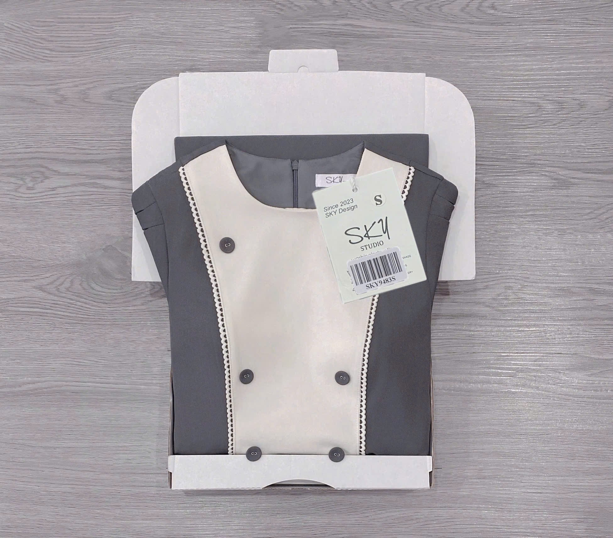 SKY9483 ĐẦM DÀI CỔ YẾM REN NÚT BỌC (XÁM)