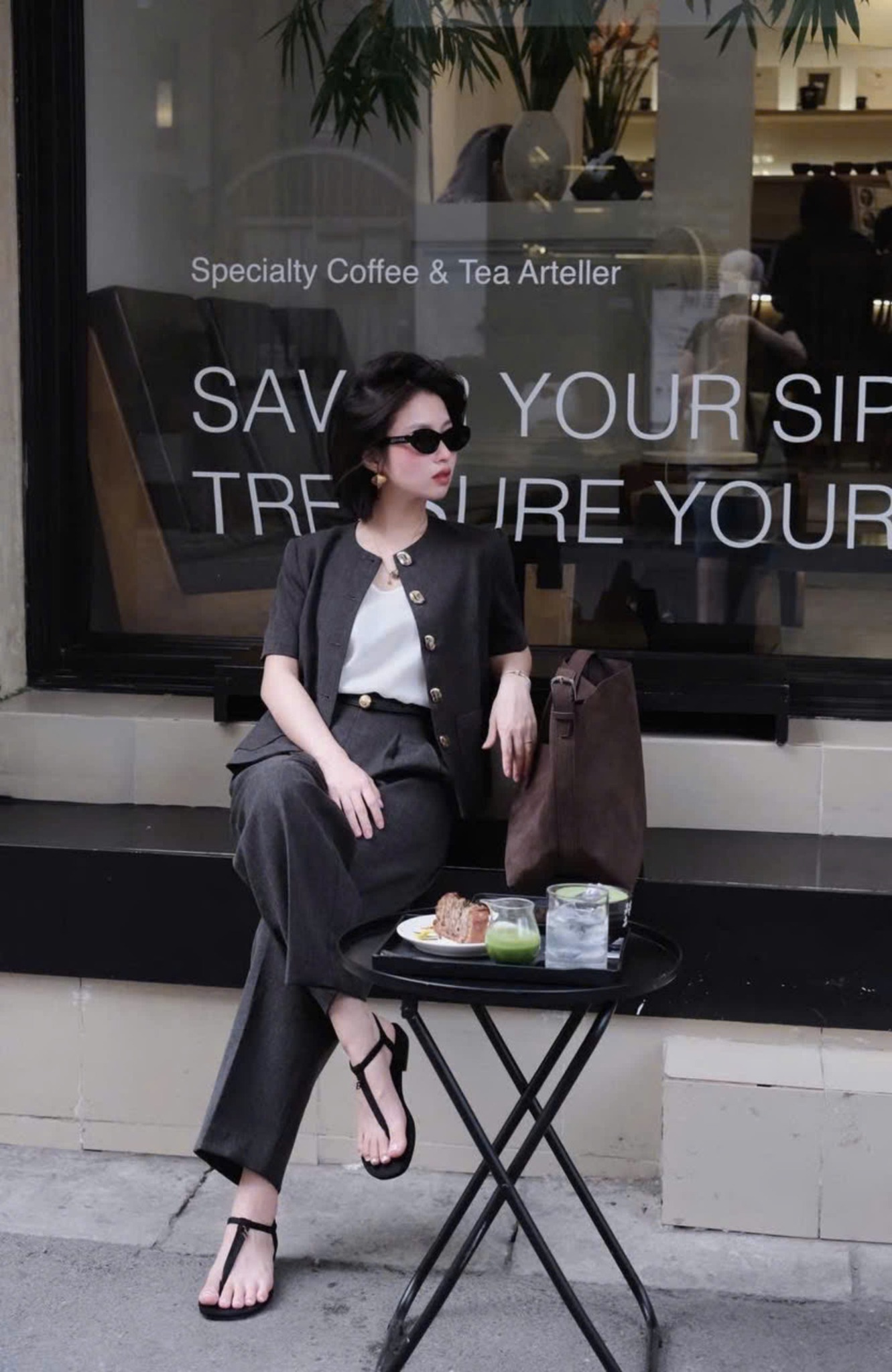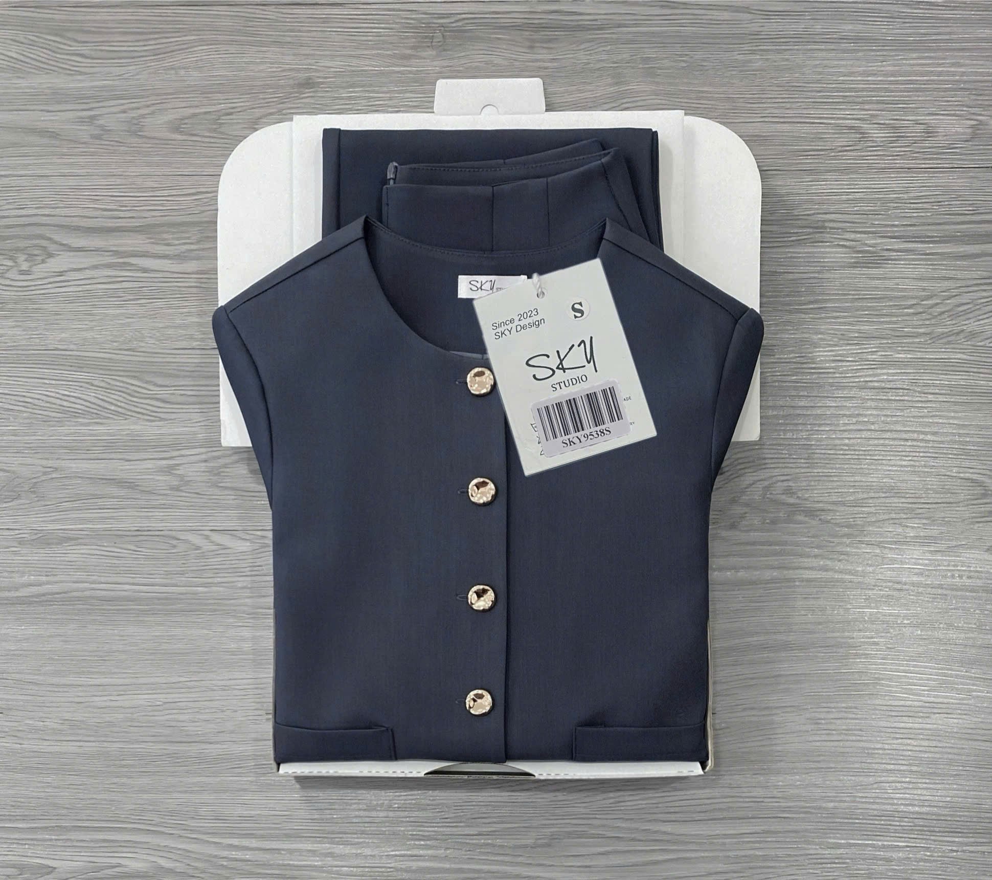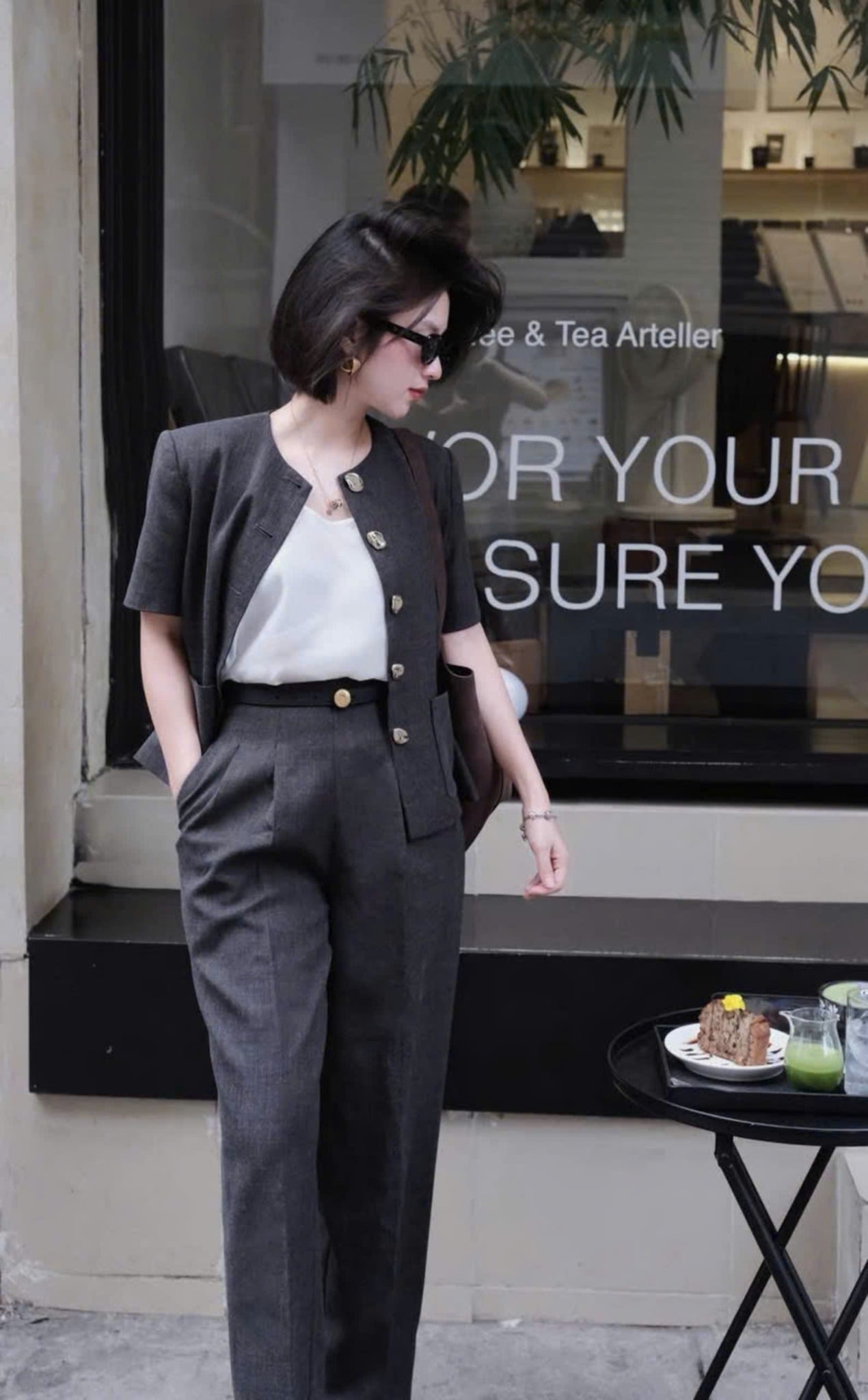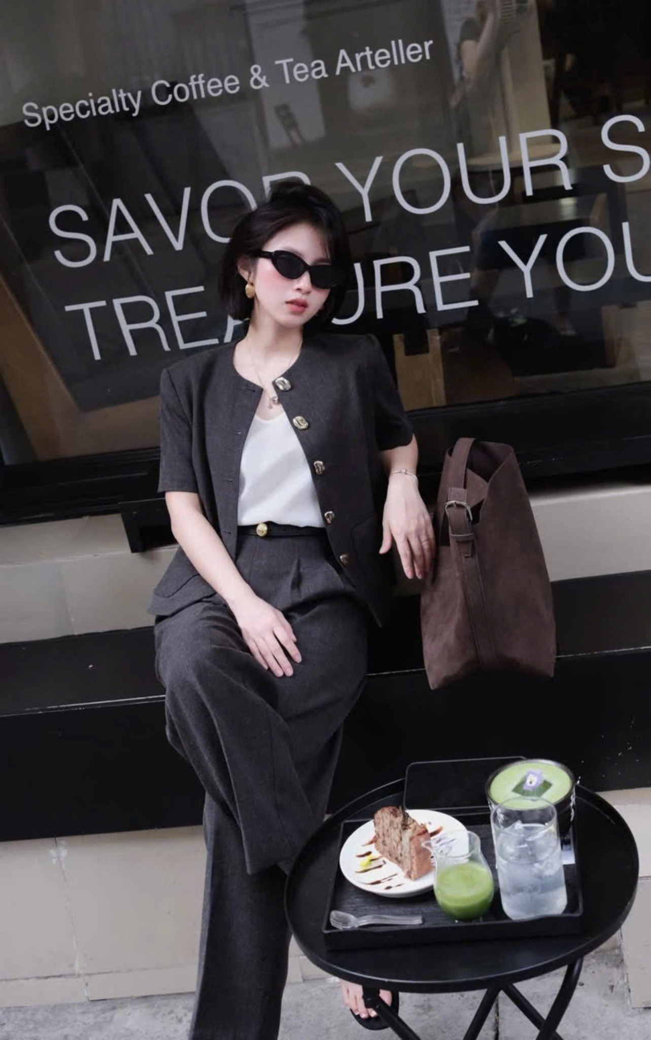 SKY9538 SET CÔNG SỞ ÁO NÚT KIỂU - QUẦN BAGGY (XÁM)