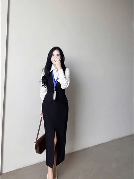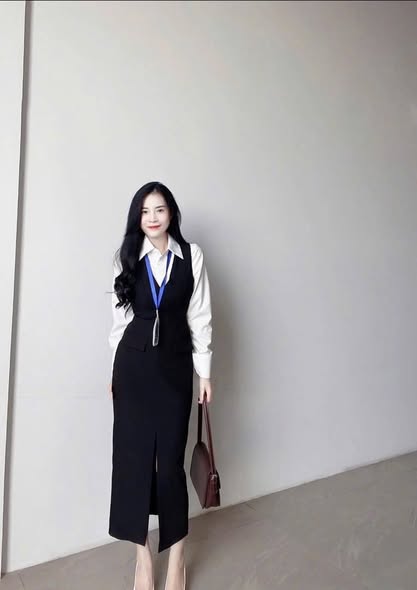 SKY9588 - SET ÁO SƠMI TRẮNG + ĐẦM DÀI ĐEN