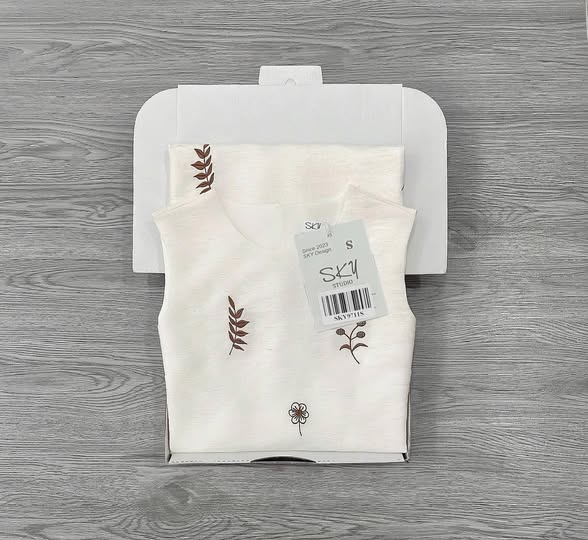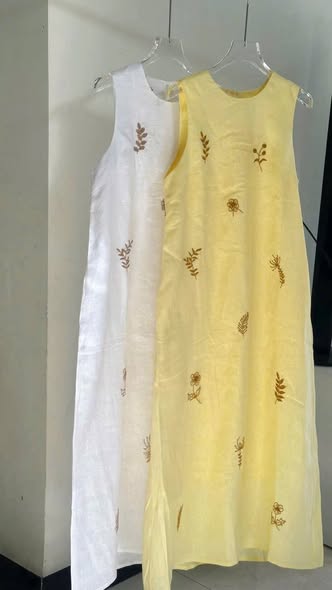 SKY9711 - ĐẦM LINEN SÁT NÁCH THÊU LÁ (TRẮNG)