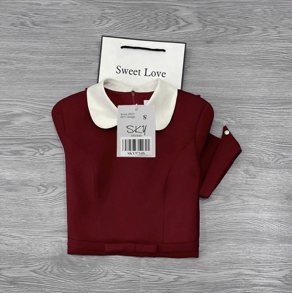 SKY9714 ĐẦM DÀI CỔ SEN EO ĐÍNH NƠ (ĐỎ ĐÔ )