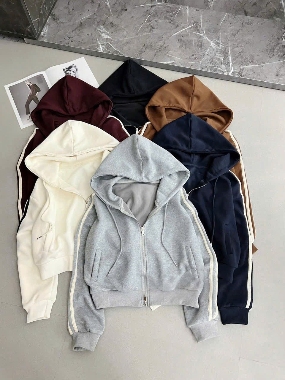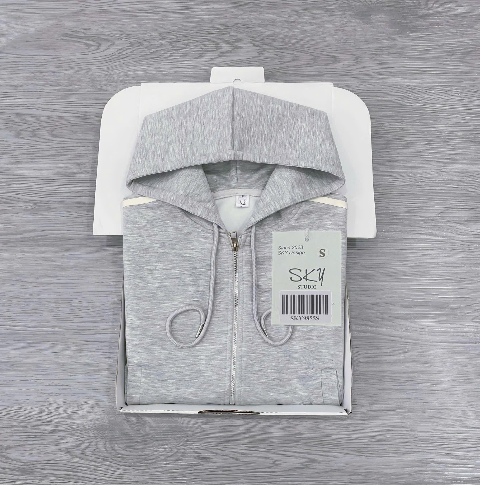 SKY9855 ÁO KHOÁC LỬNG PHỐI SỌC CÓ NÓN (XÁM)