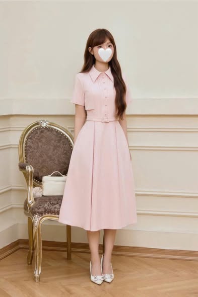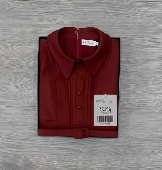 SKY9994 - ĐẦM DÀI CỔ SƠMI NÚT BỌC KÈM NỊT (ĐỎ ĐÔ)