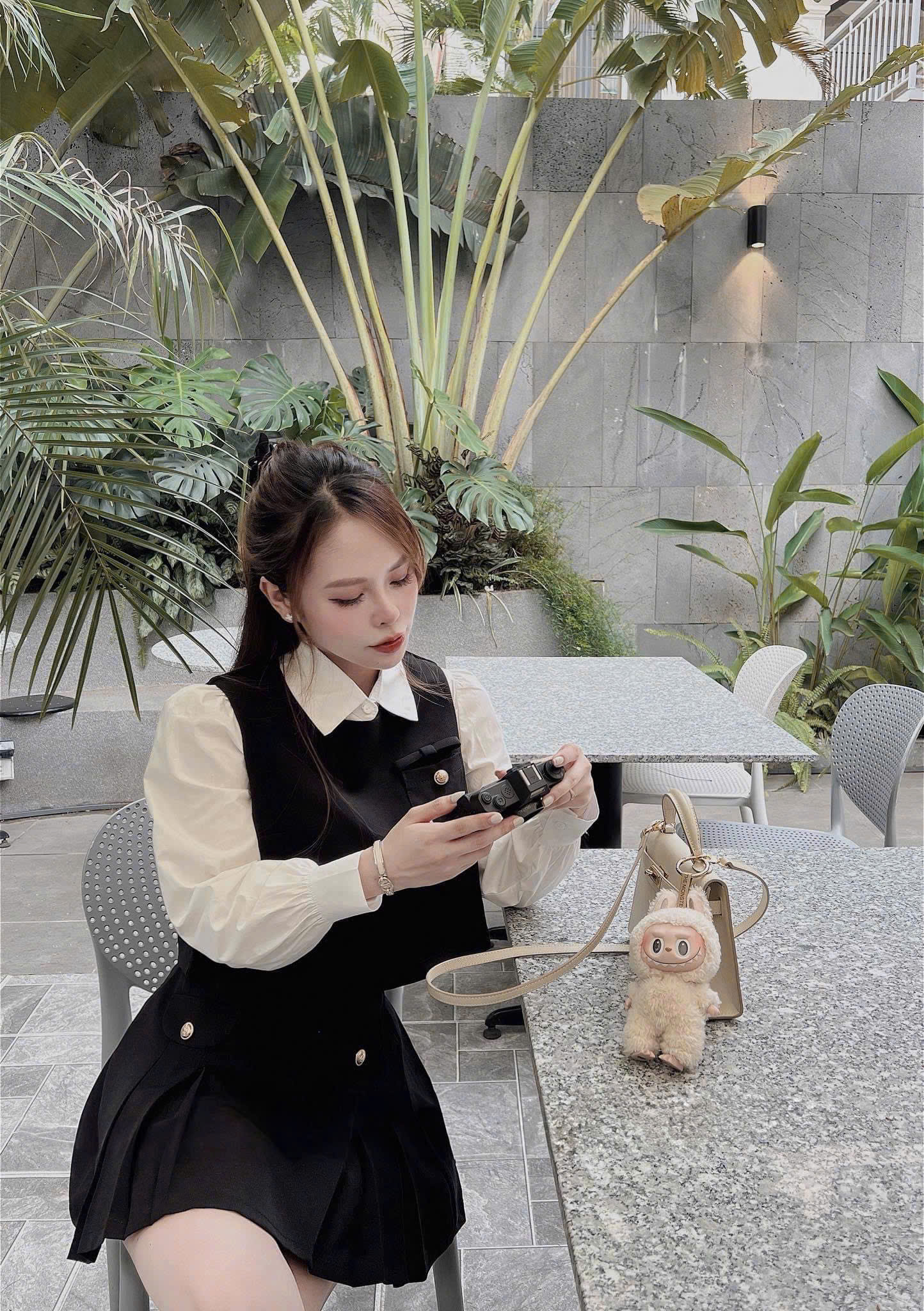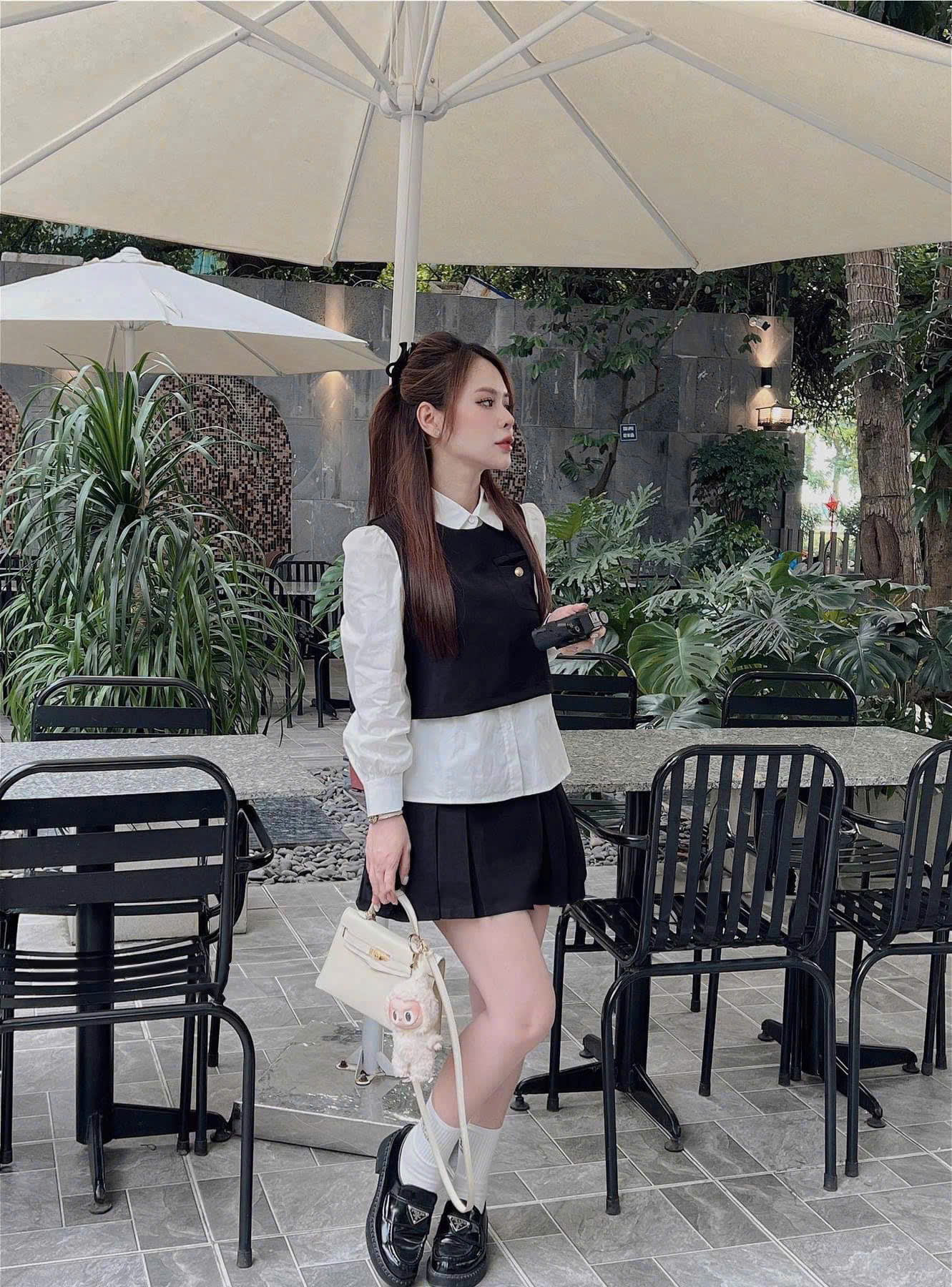 Size M: áo ngoài ngực 94, dài 43, váy eo 70, dài 39, áo sơ mi ngực 94, dài 59
