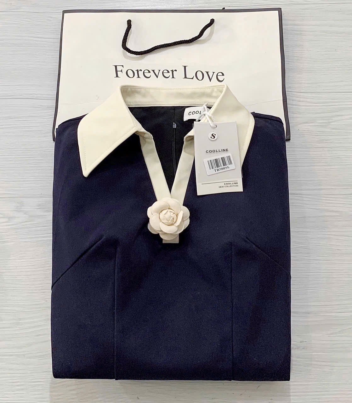 TB5809 ĐẦM CỔ SƠ MI ĐÍNH HOA (XANH )
