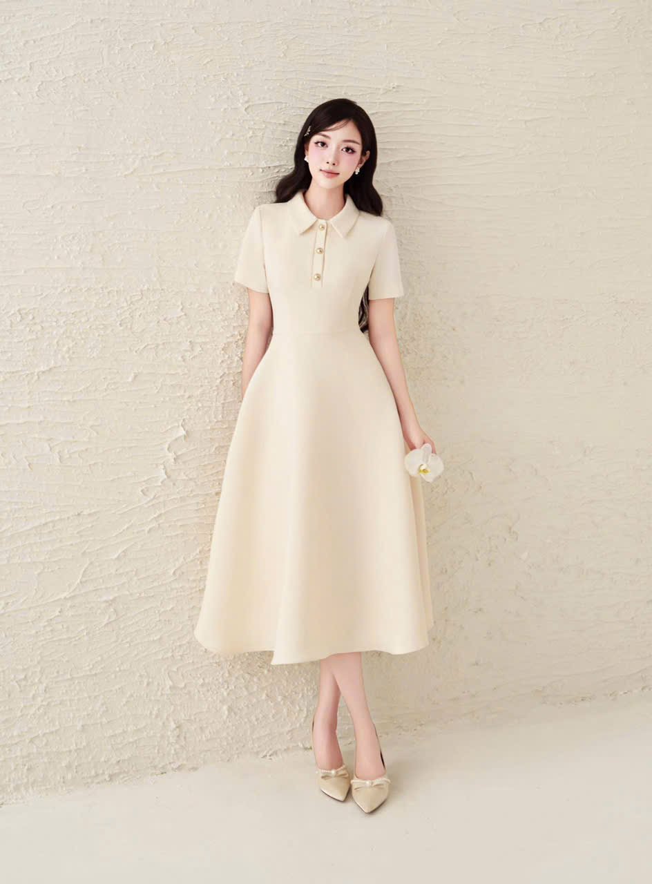 TB5813 ĐẦM SƠ MI ĐÍNH NÚT (KEM)