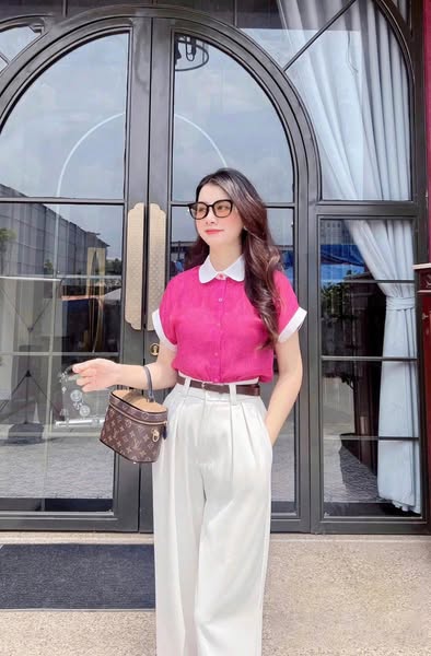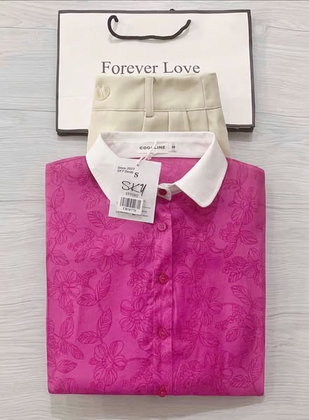 TB5877 - SET ÁO HỌA TIẾT HỒNG + QUẦN DÀI KEM (KHÔNG KÈM NỊT)