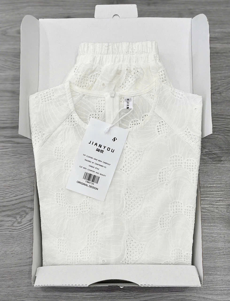 TB8372-Set thêu hoa CC , áo tay lỡ + quần short Trắng