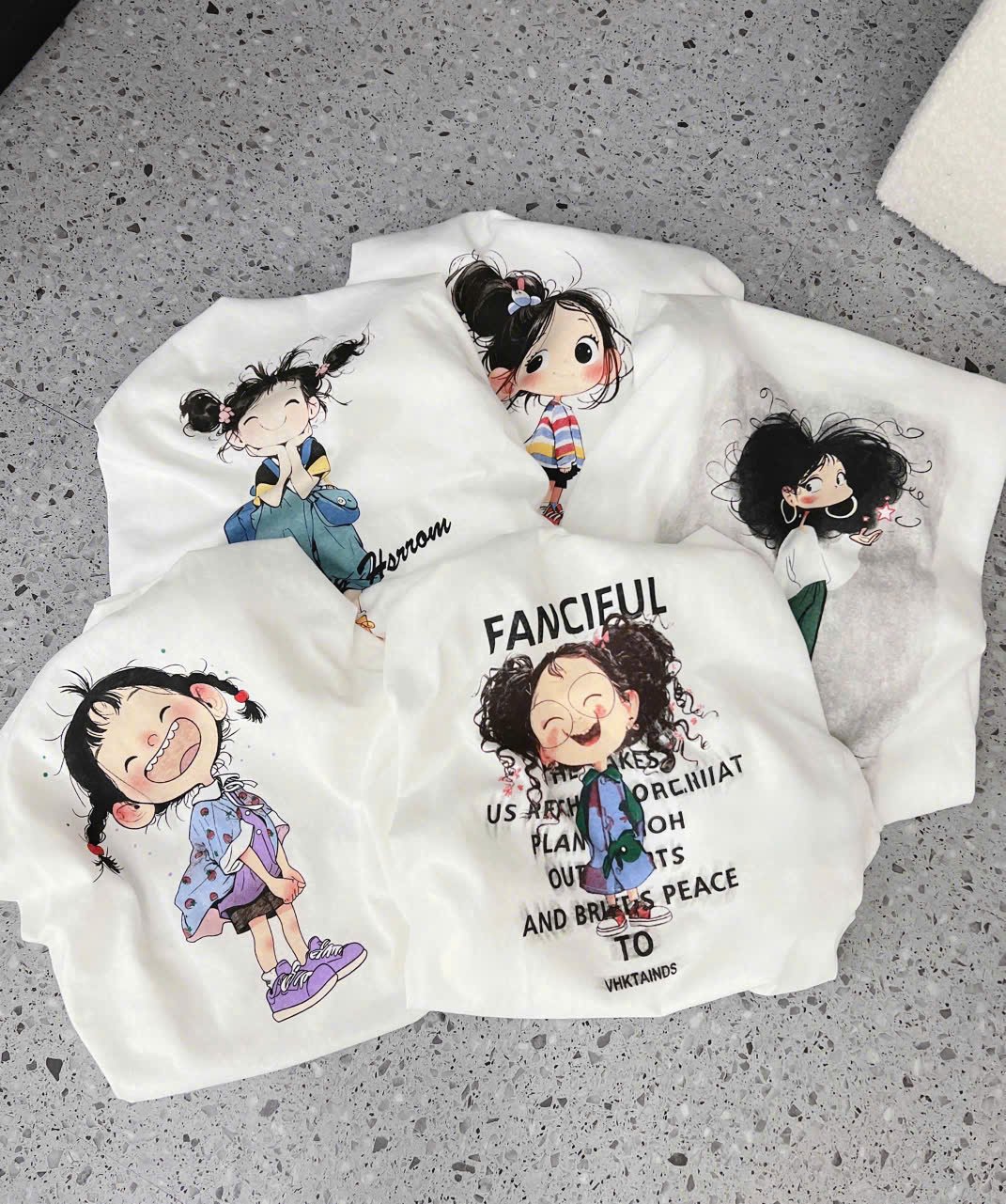 TB8461-Áo thun trắng in hình bé gái tóc xù Fancitul