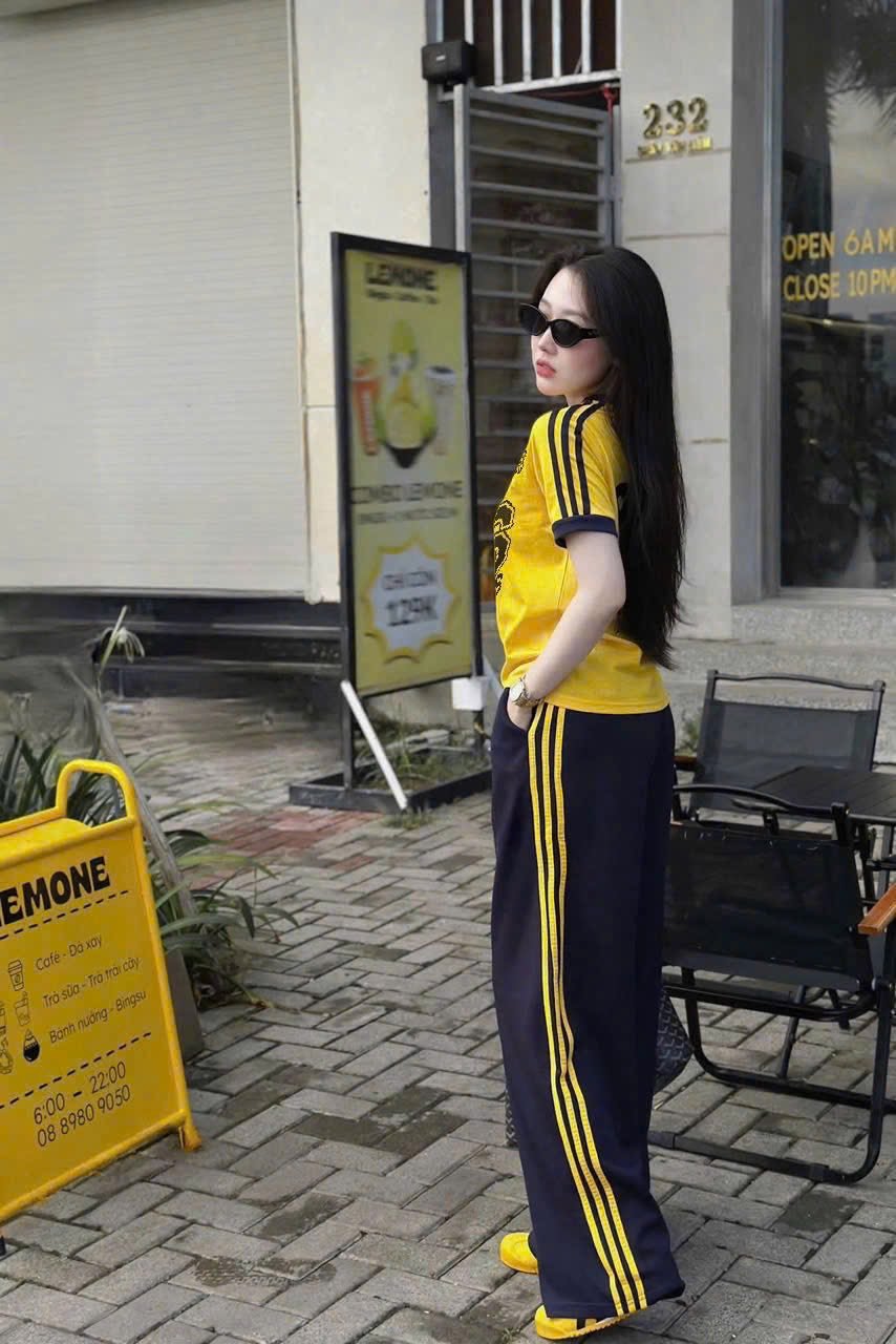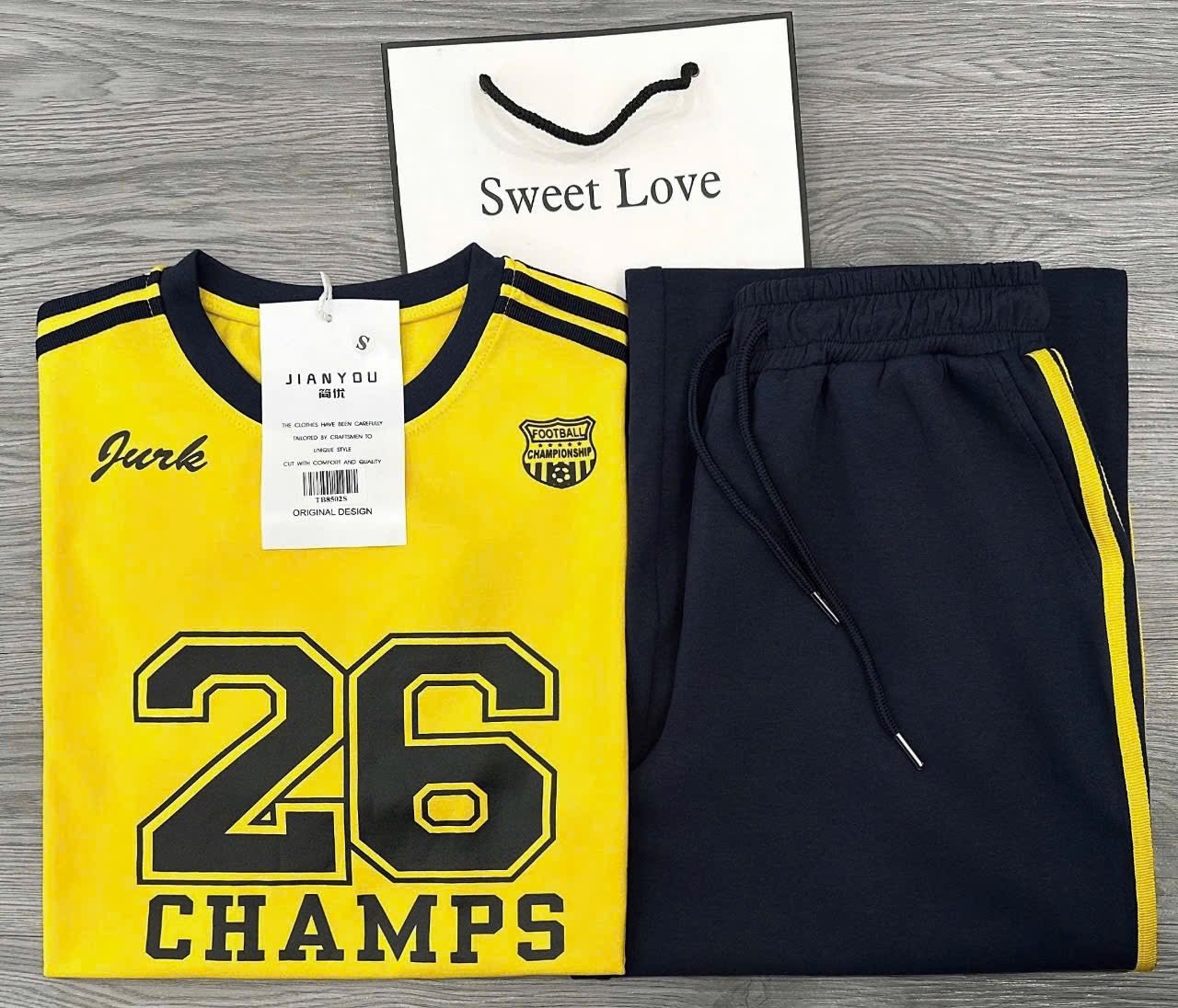 TB8502-Set thể thao, áo thun vàng in số 26+quần dài phối sọc