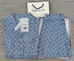 TB8530 Set áo gile họa tiết, Cváy xếp li (Xanh)