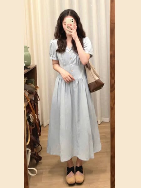 TB9011 - ĐẦM DÀI PHỐI NÚT (XANH)