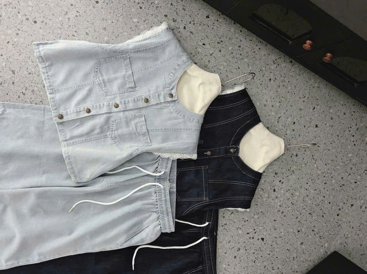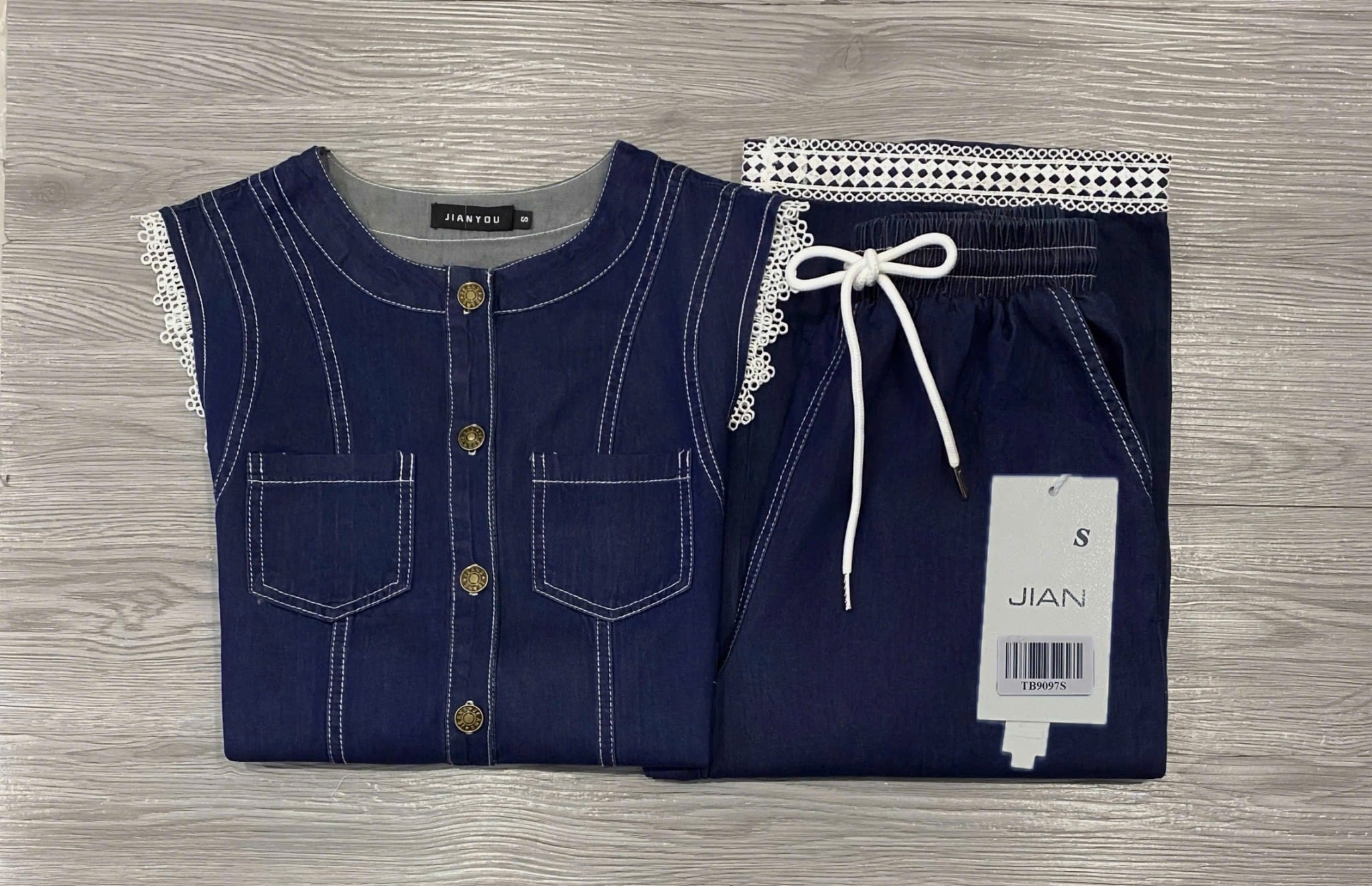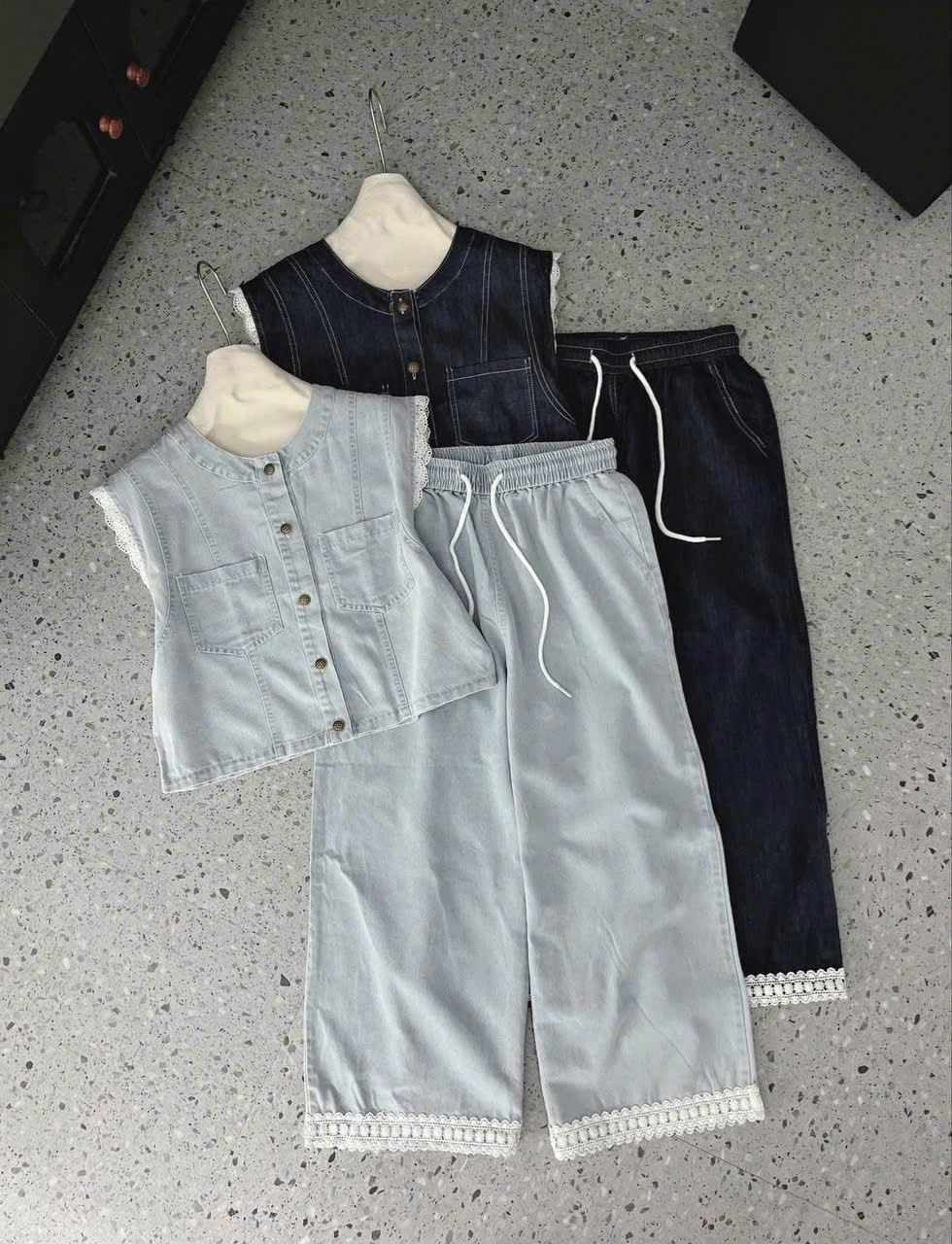SIZE S: NGỰC 94, DÀI ÁO 45, EO THUN 58-88, DÀI QUẦN 100, ỐNG QUẦN 26