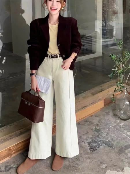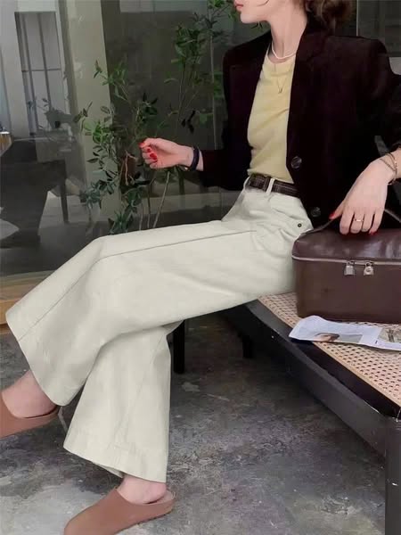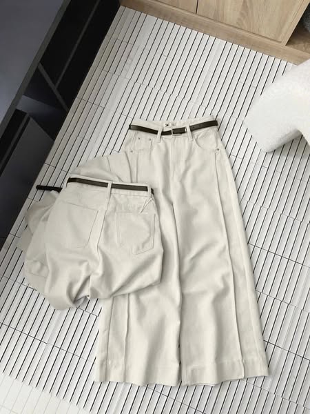TB9158 - QUẦN DÀI ỐNG RỘNG KEM - QUẦN LẺ (KÈM NỊT)
