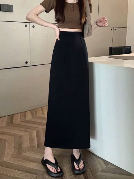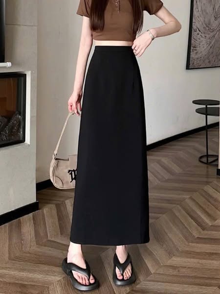 TB9339 - CHÂN VÁY BASIC ĐEN (VÁY LẺ)