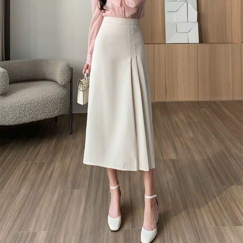 TB9510 CHÂN VÁY DÀI XẾP LY (KEM )