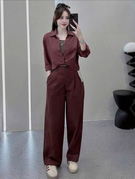 SIZE M: NGỰC ÁO SƠMI 108, DÀI 52 - NGỰC ÁO TRONG 70, EO ÁO 62, DÀI 47, EO QUẦN 70, DÀI 99, NGANG ỐNG 26CM