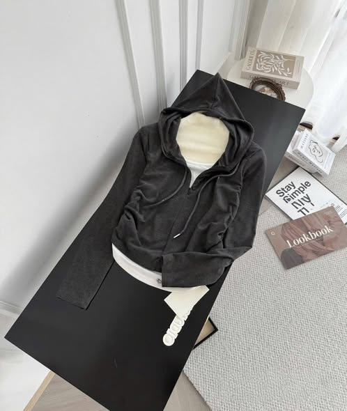 TB9822 - ÁO THUN 2 LỚP CÓ NÓN (XÁM)