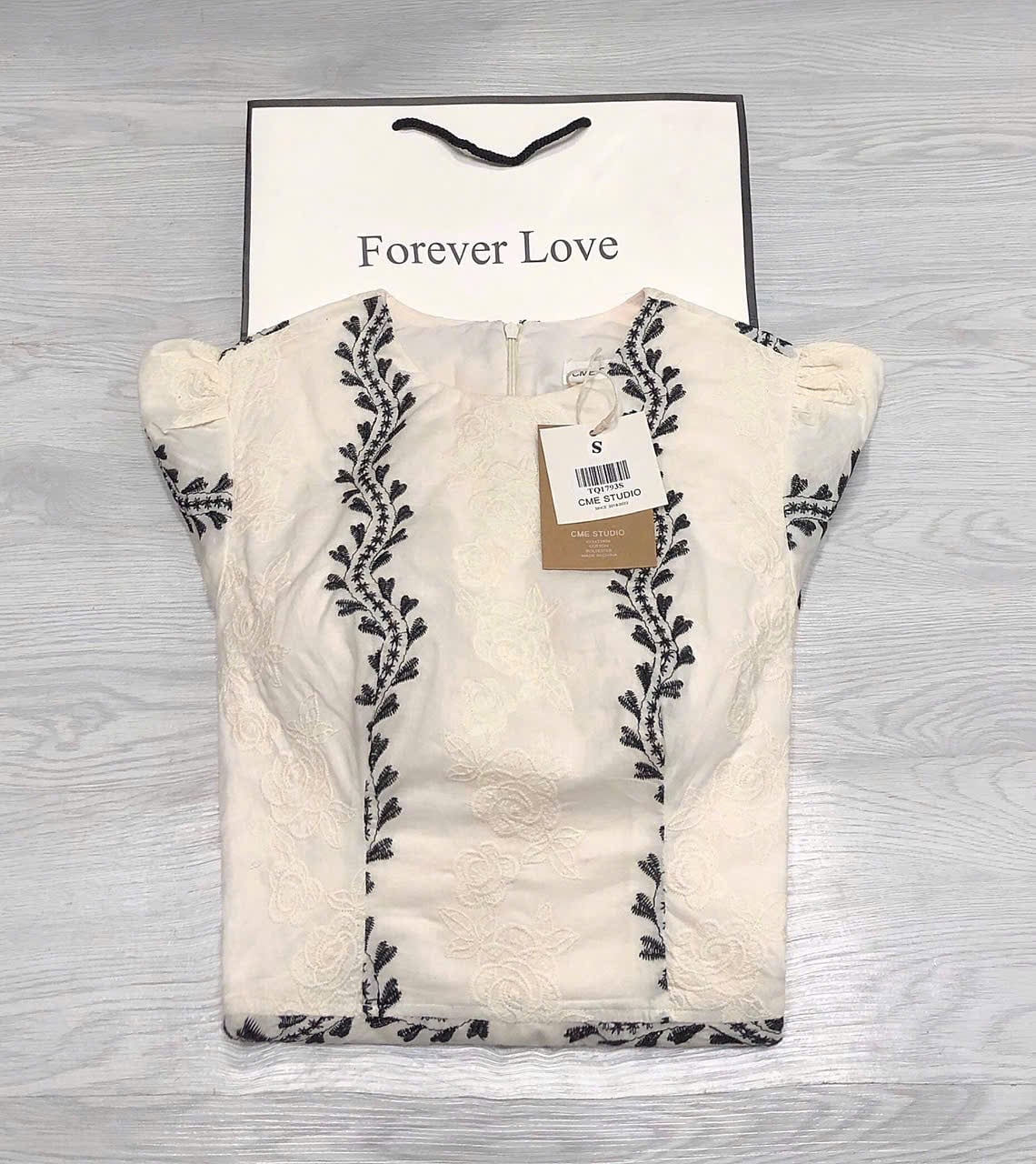 QCC0017- Áo họa tiết phối viền nhung Đen