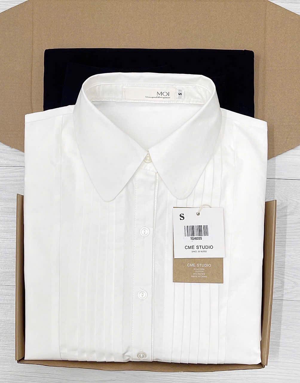 TQ4020-Set công sở áo sơ mi kiểu, CV dài Đen (áo Trắng)