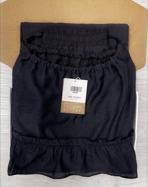 TB7583 SET ÁO CỔ VUÔNG CHÂN VÁY DÀI (ĐEN)