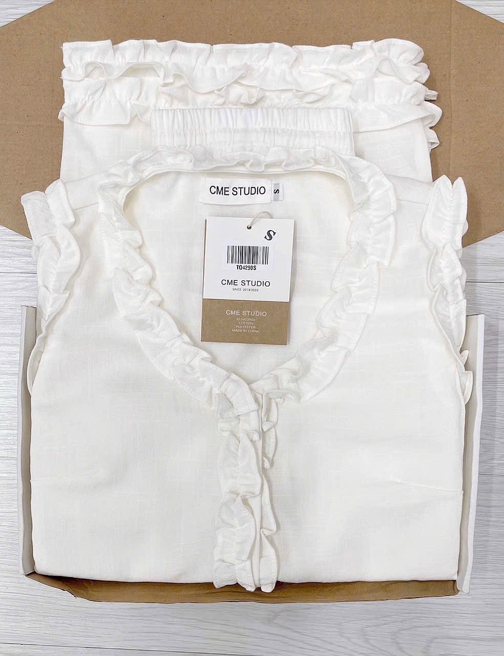 TQ4290-Set linen, áo sát nách+quần suông viền bèo Trắng Kem