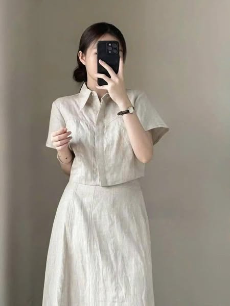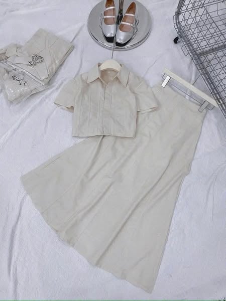 TQ4366 - SET ÁO KIỂU SƠ MI + CHÂN VÁY DÀI KEM