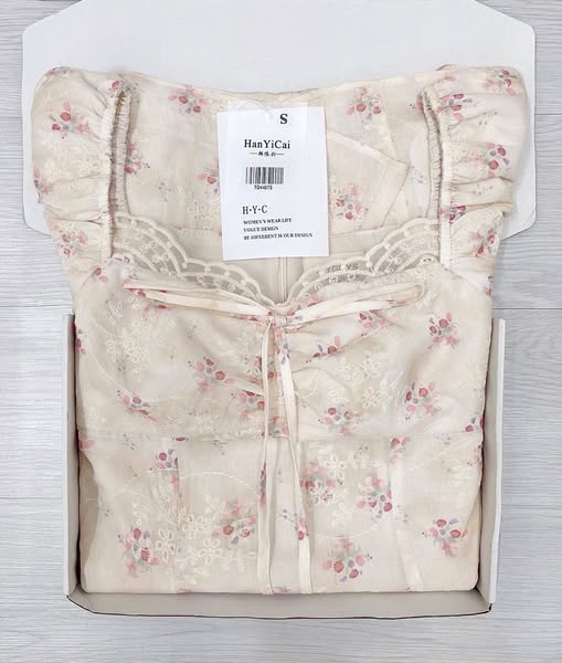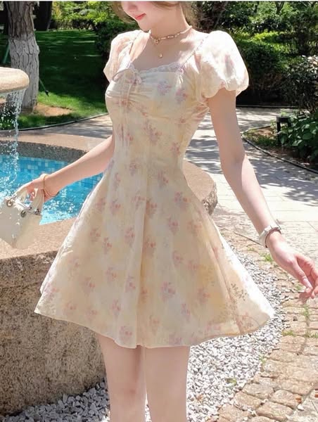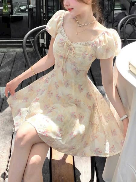 TQ4487 - ĐẦM NGẮN THÊU HOA NHÍ PHỐI NƠ (KEM)