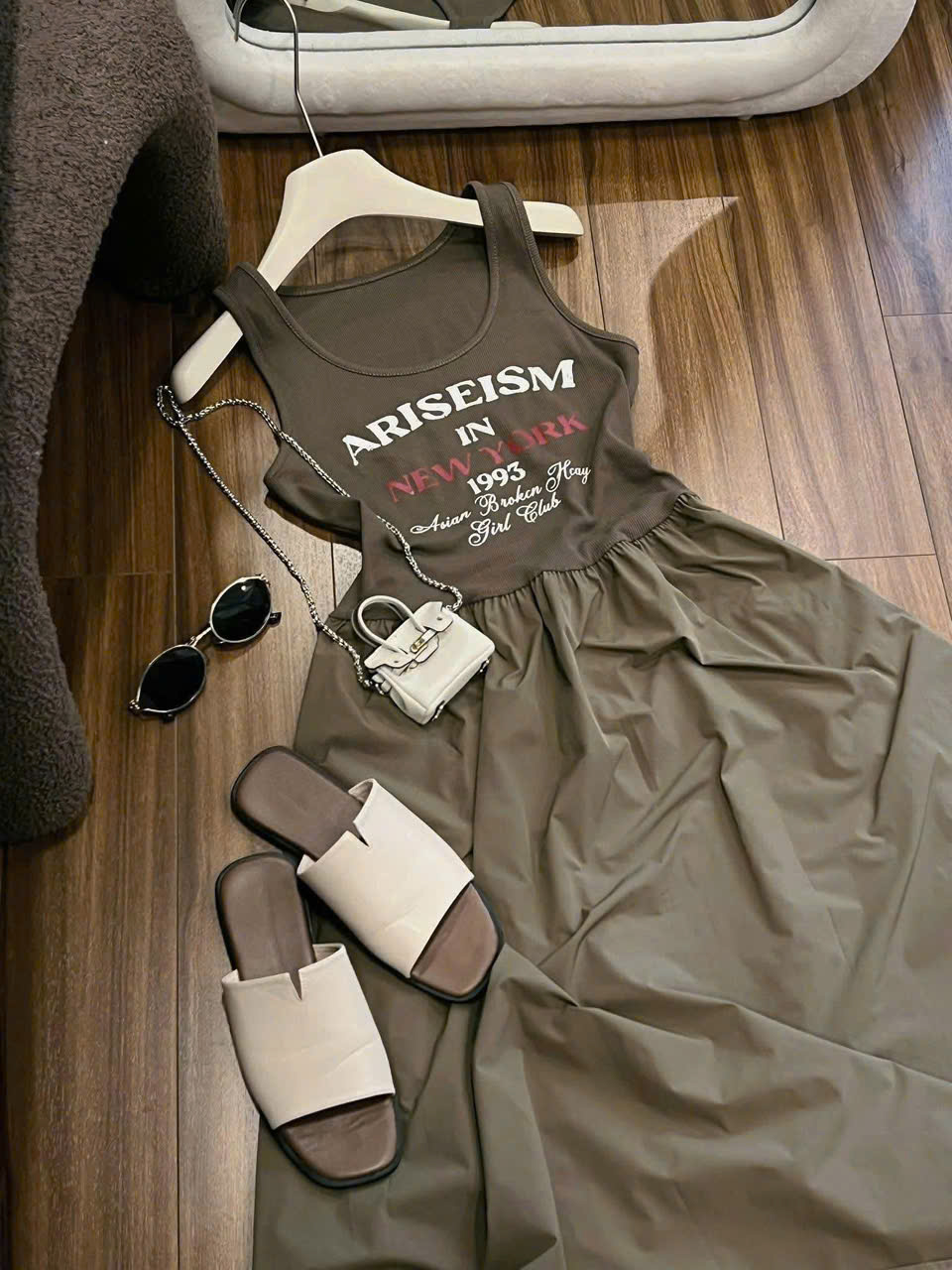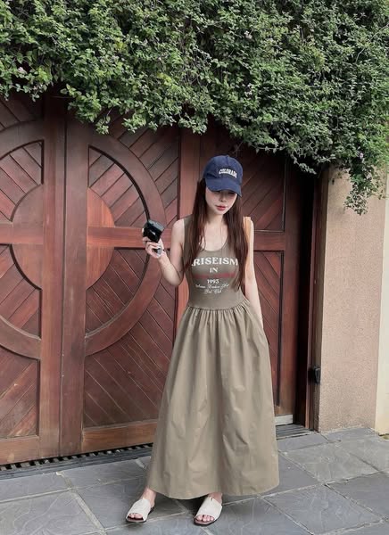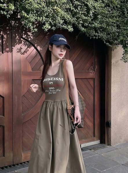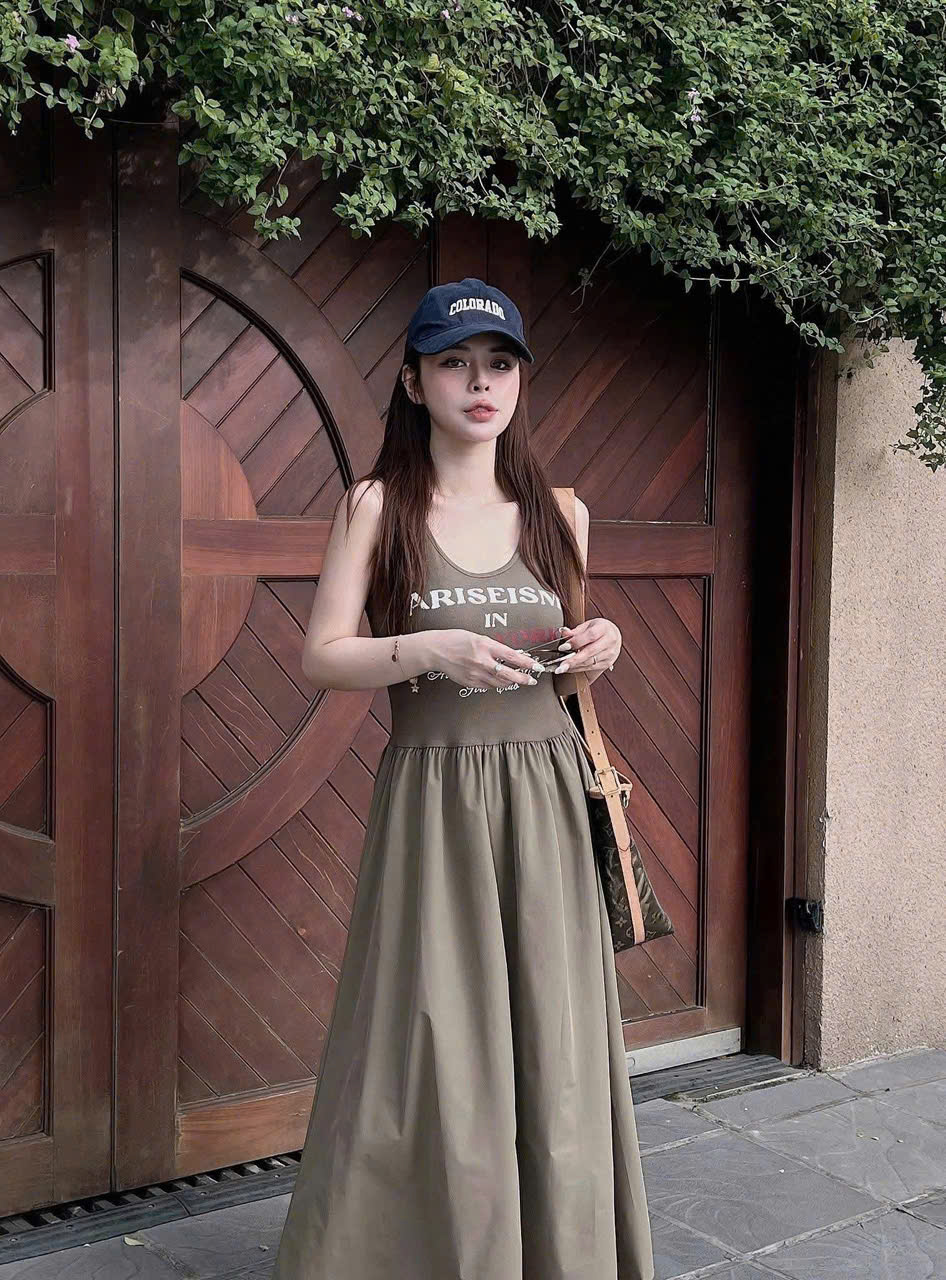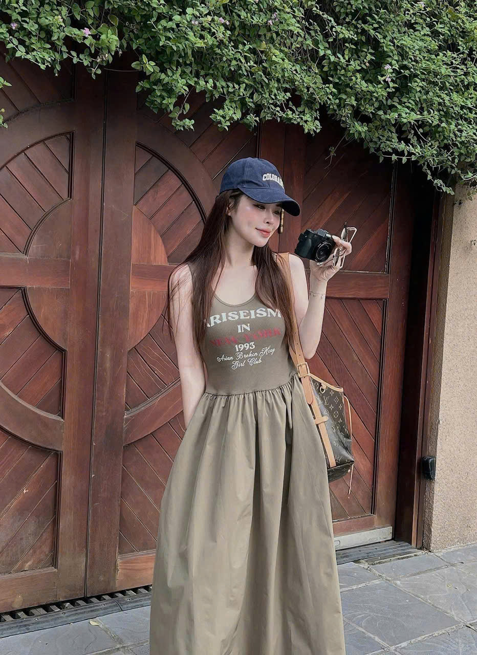 TQ4558 - ĐẦM 2 DÂY IN CHỮ PHỐI TÙNG (NÂU)