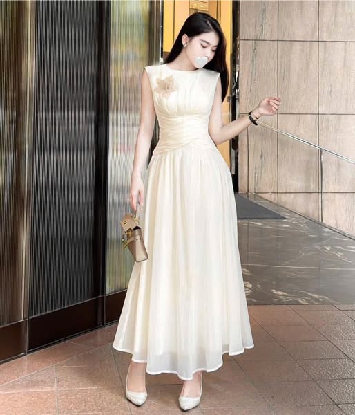 TQ4611 - ĐẦM DÀI SÁT NÁCH KEM (KÈM TAG HOA)