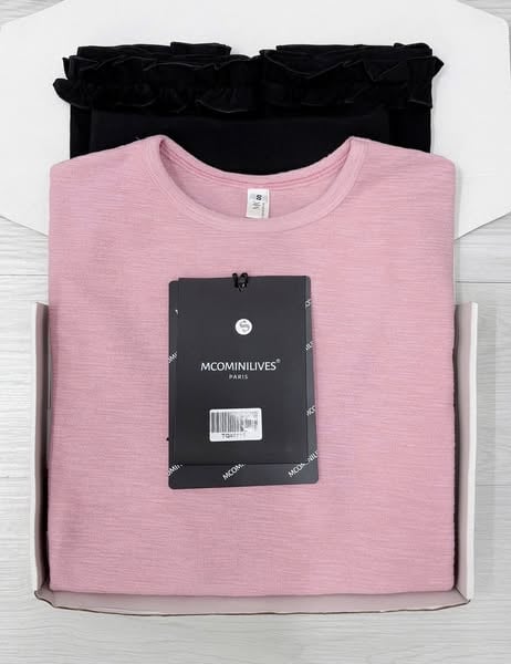 TQ4621 - SET ÁO THUN HỒNG + CHÂN VÁY ĐEN VIỀN BÈO (KHÔNG KÈM KHĂN)