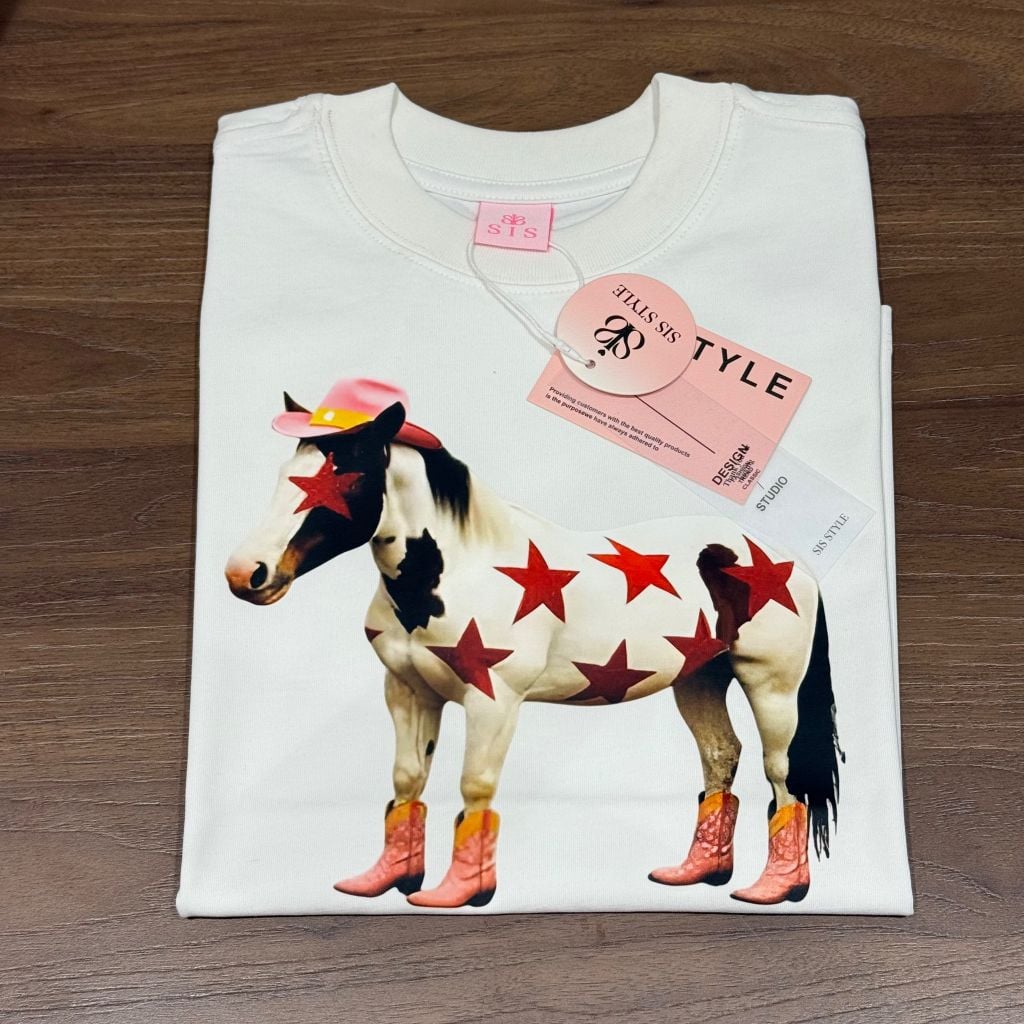 TUN0900 ÁO THUN IN NGỰA NGÔI SAO (TRẮNG)