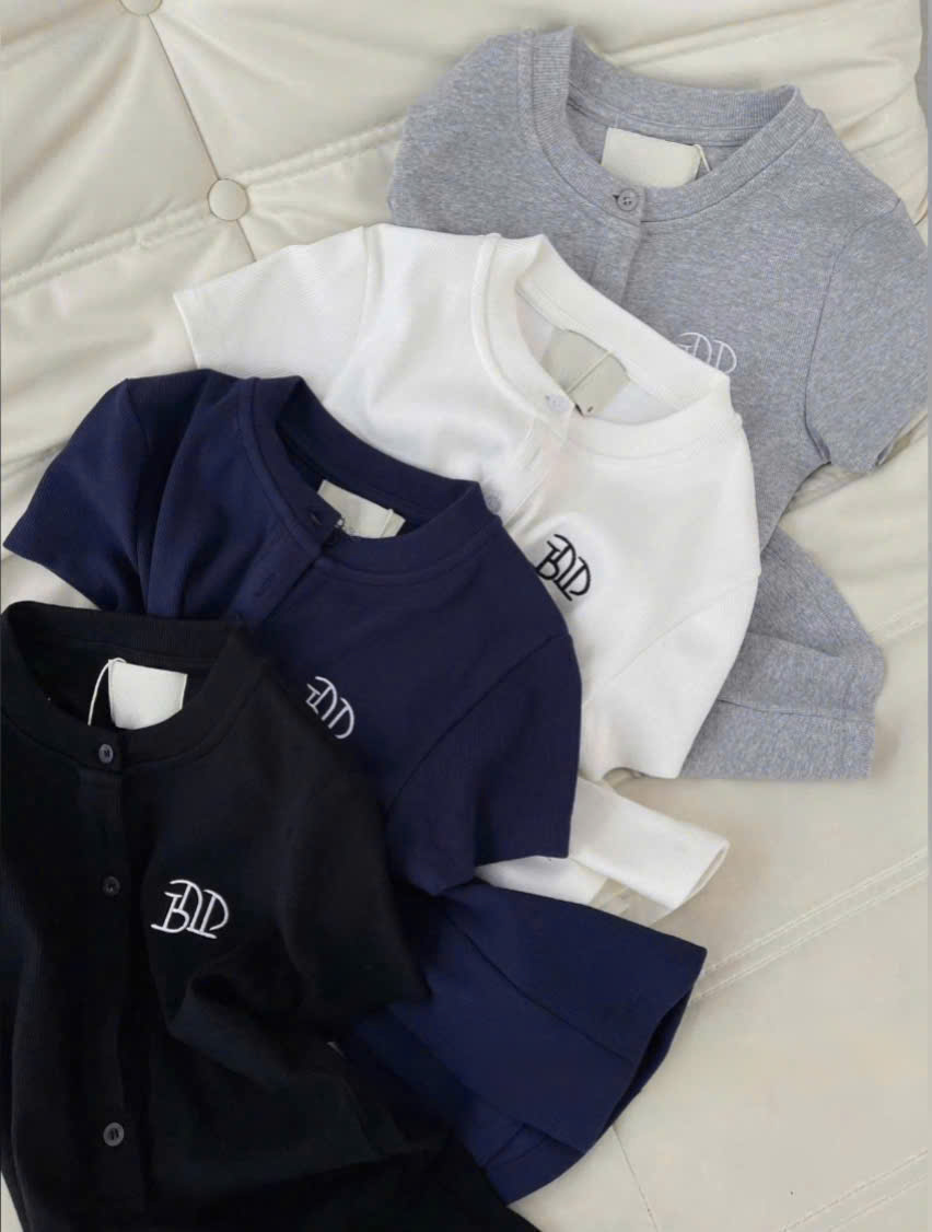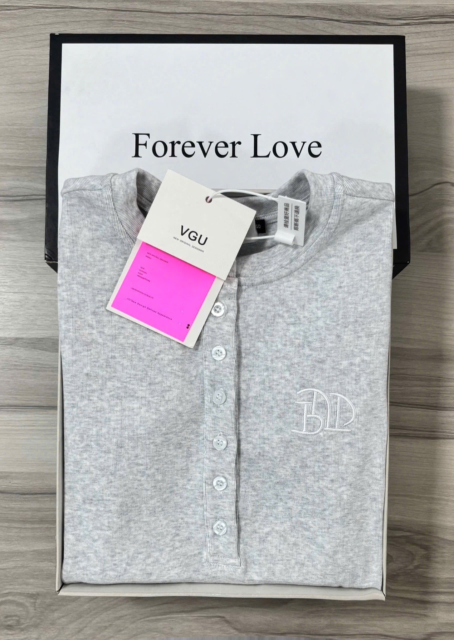 VGU0439 - ÁO THUN THÊU CHỮ PHỐI NÚT XÁM