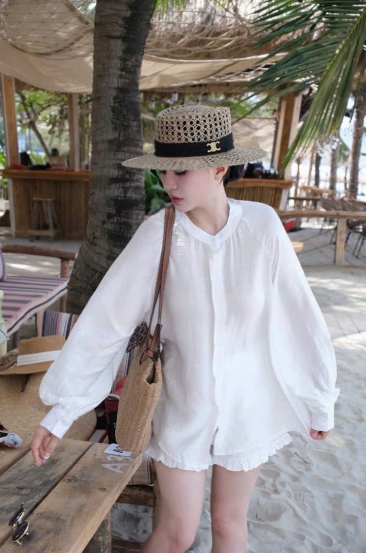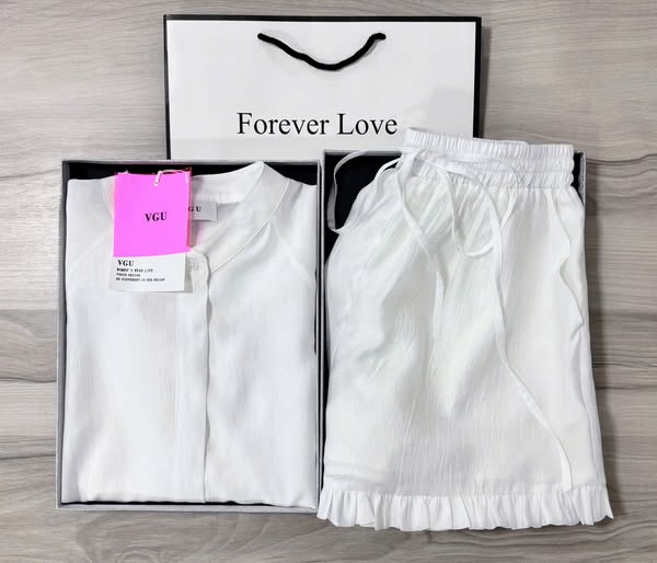 KS5058 SET ÁO HOA BƯỚM THÊU QUẦN SHORT (KEM)