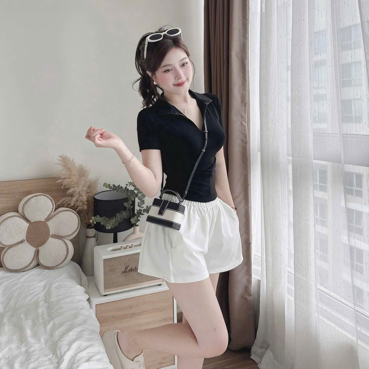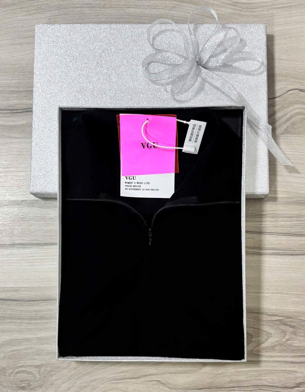VGU0778 - ÁO THUN CỔ KHÓA KÉO PHOM NGẮN - MÀU ĐEN ( ÁO LẺ)