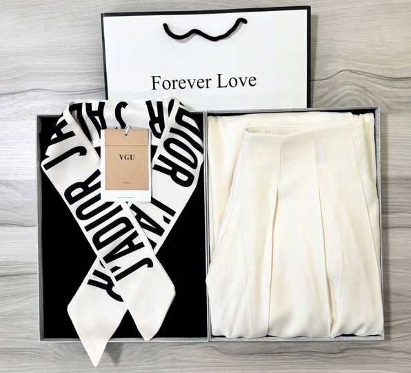 VGU0806 - SET ÁO THUN ĐEN + CHÂN VÁY DÀI KÈM KHĂN (3MÓN)
