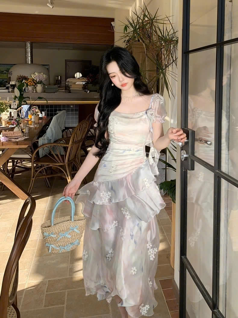 SIZE S : ngực đầm 86 : eo 68 : dài đầm 125 : vai đầm có chun