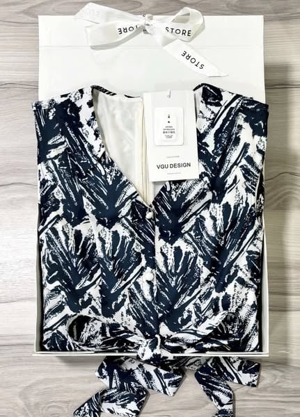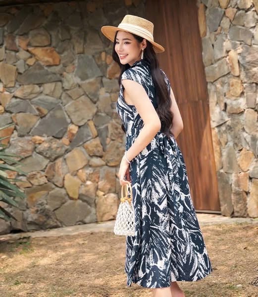 VGU1151 - ĐẦM DÀI CỔ V HOẠ TIẾT XANH ĐEN