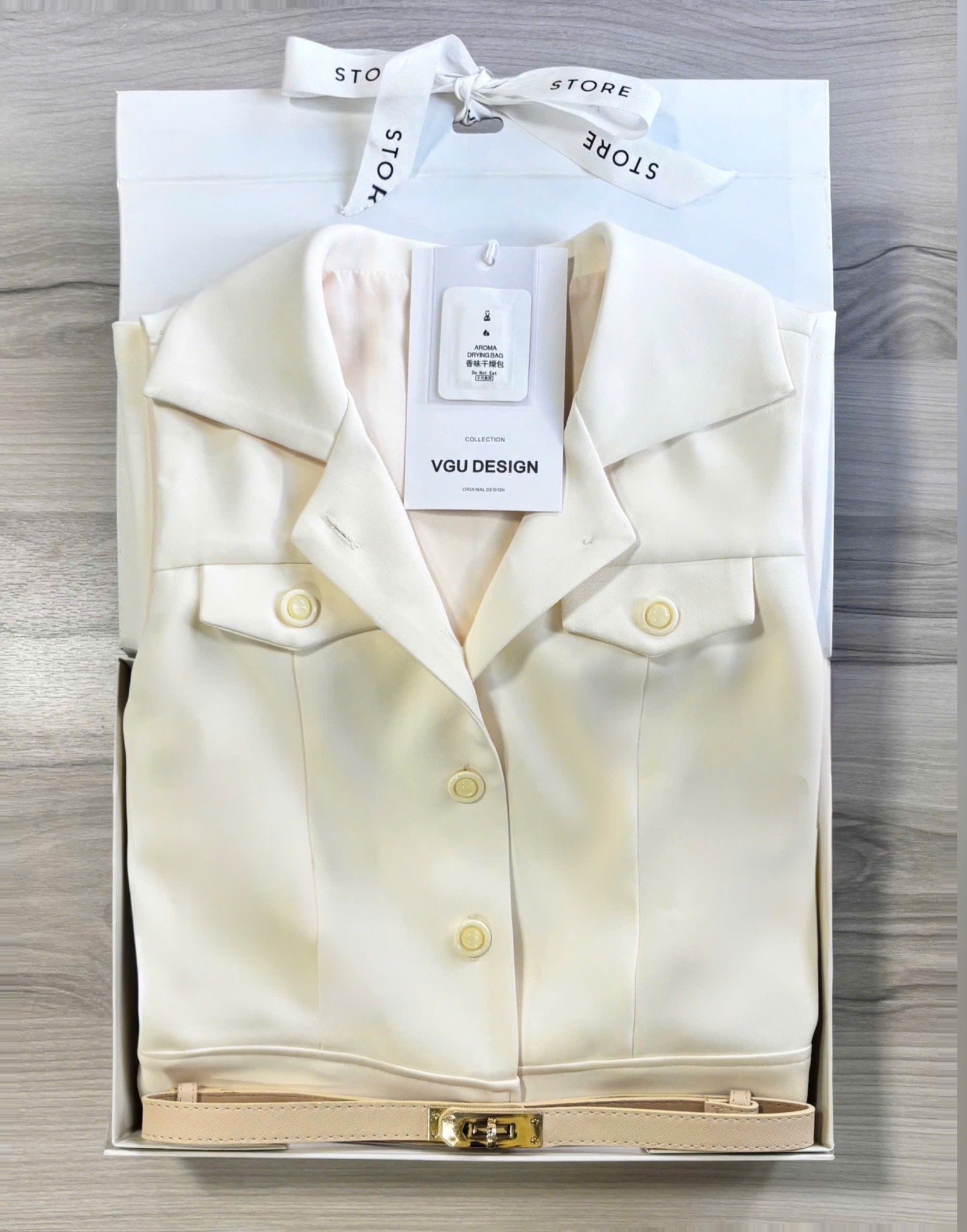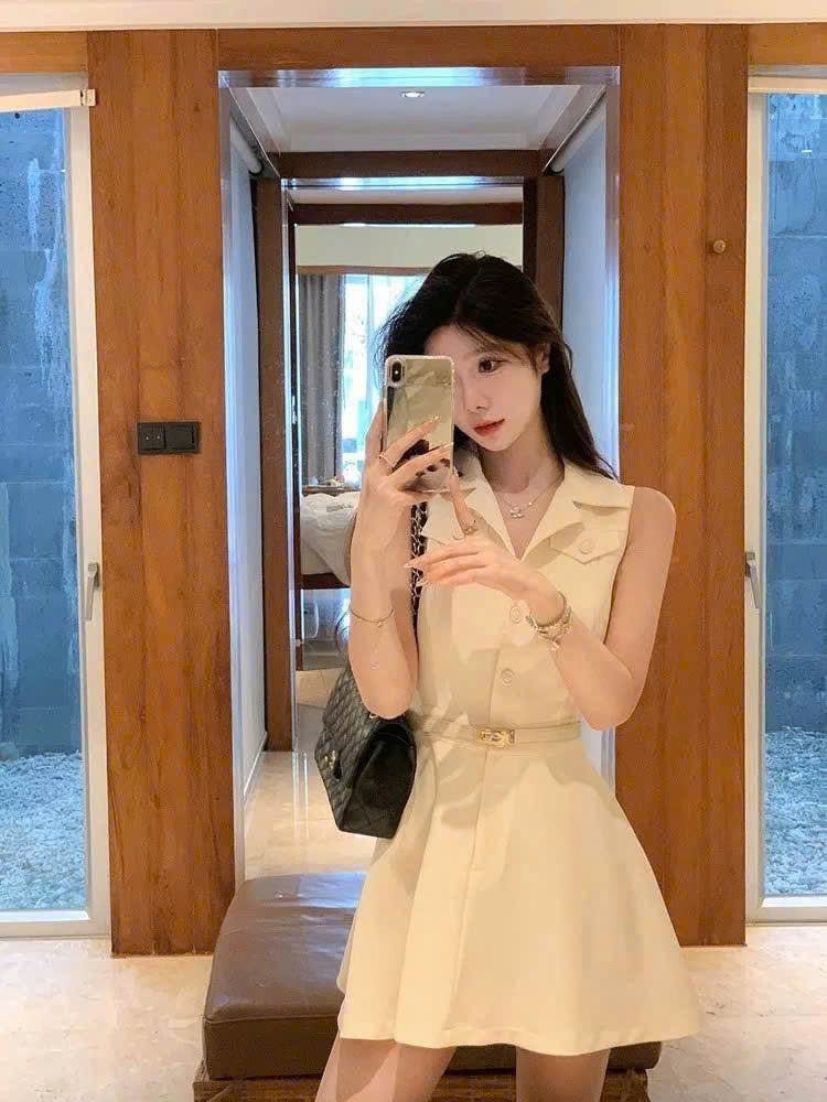 VGU1218 ĐẦM CỔ V KÈM NỊT (KEM)