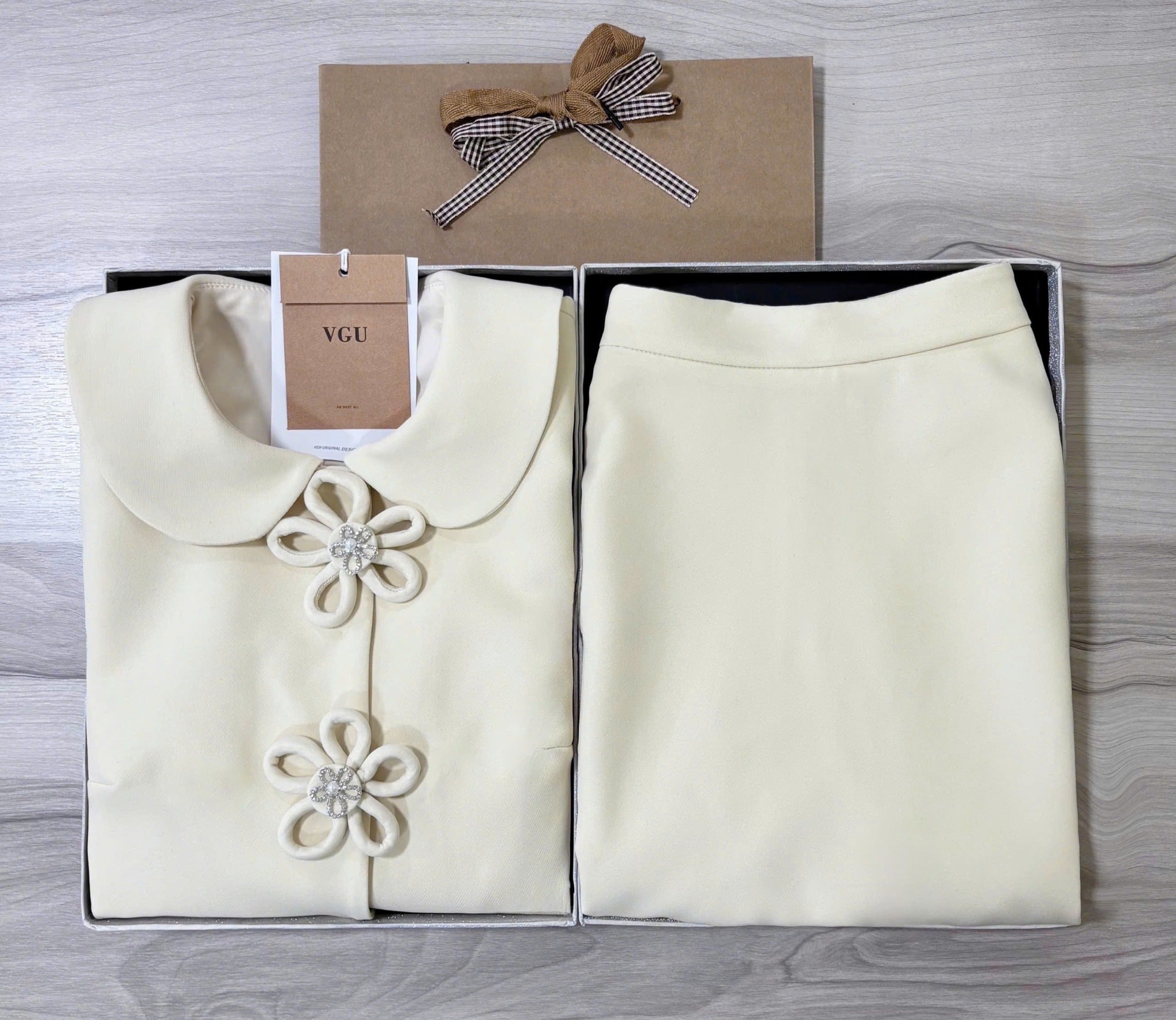 VGU1454 SET ÁO CỔ SEN KẾT HOA - CHÂN VÁY KEM