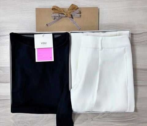 VGU1459 - SET ÁO ĐEN PHỐI DÂY + QUẦN DÀI TRẮNG