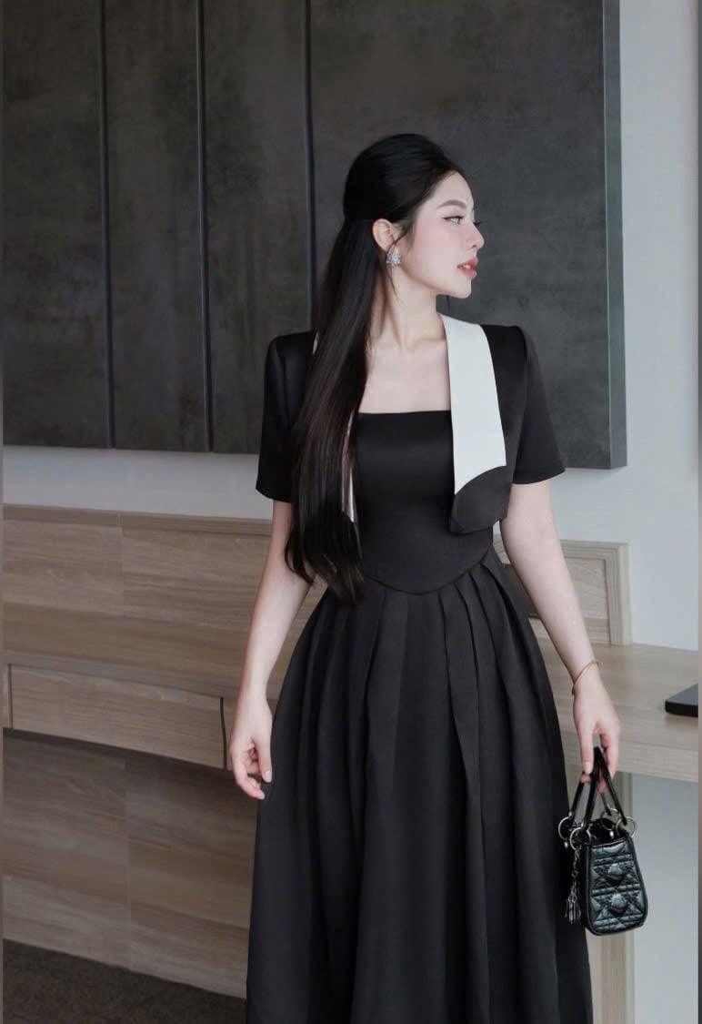VGU1510 - ĐẦM DÀI 2 DÂY ĐEN + ÁO KHOÁC