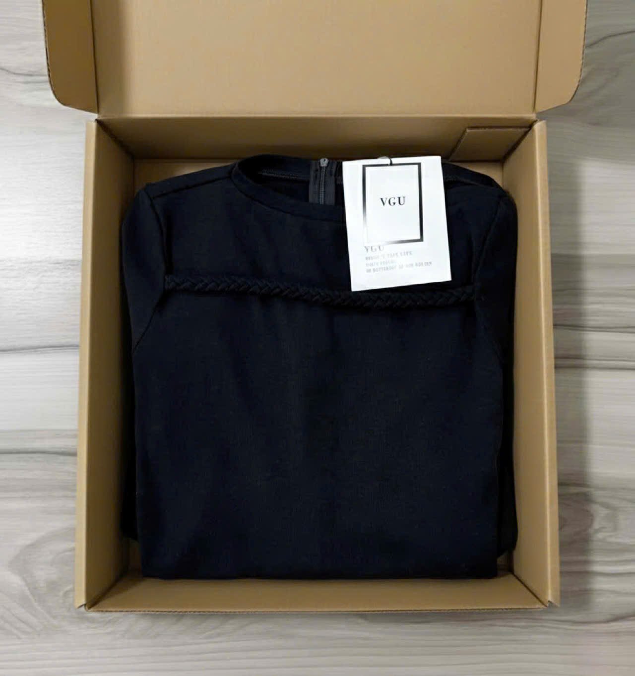 VGU1546 ĐẦM THUN ĐEN PHỐI DÂY BÍNH