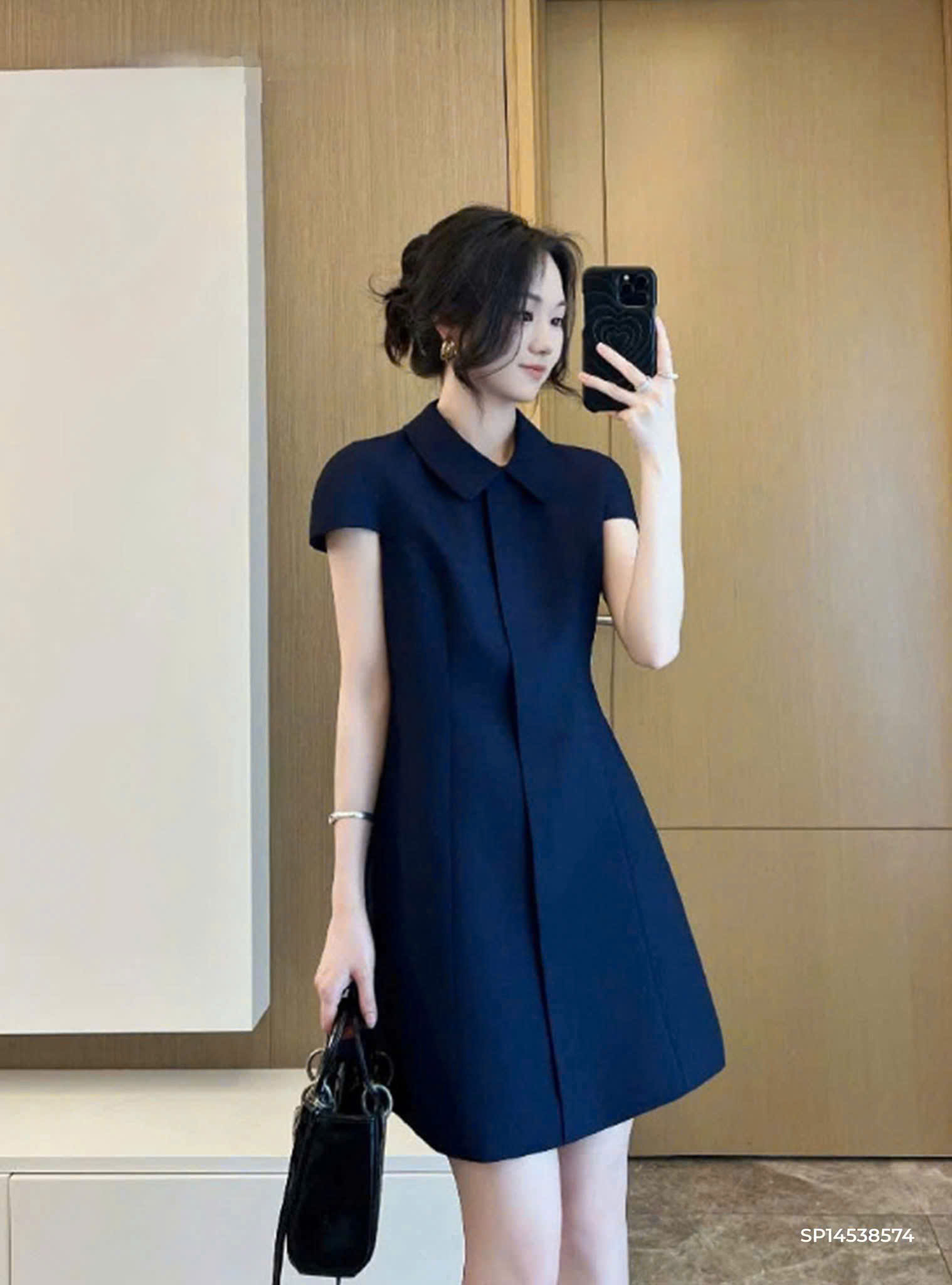 VGU1591 ĐẦM CỔ SEN BASIC (XANH ĐEN)