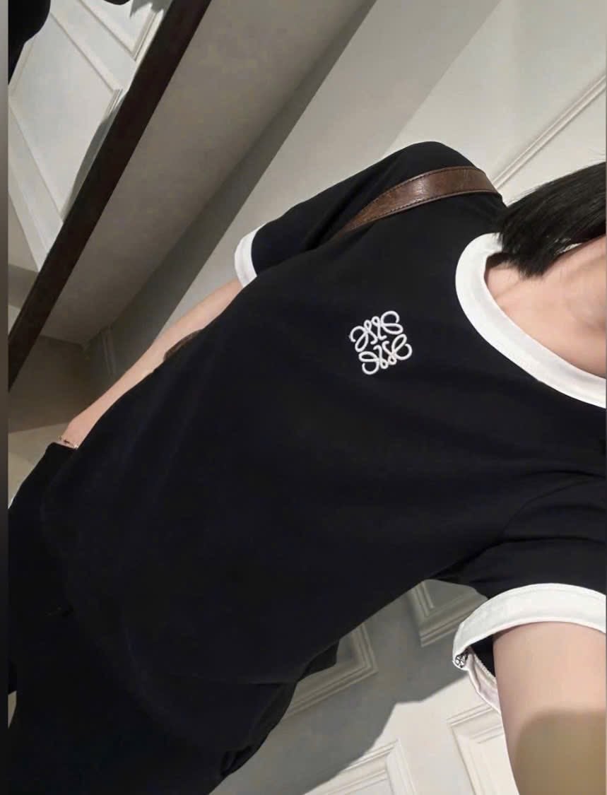 VGU9429-Set áo thun tay ngắn , CV ren hoa Nâu (áo trắng)